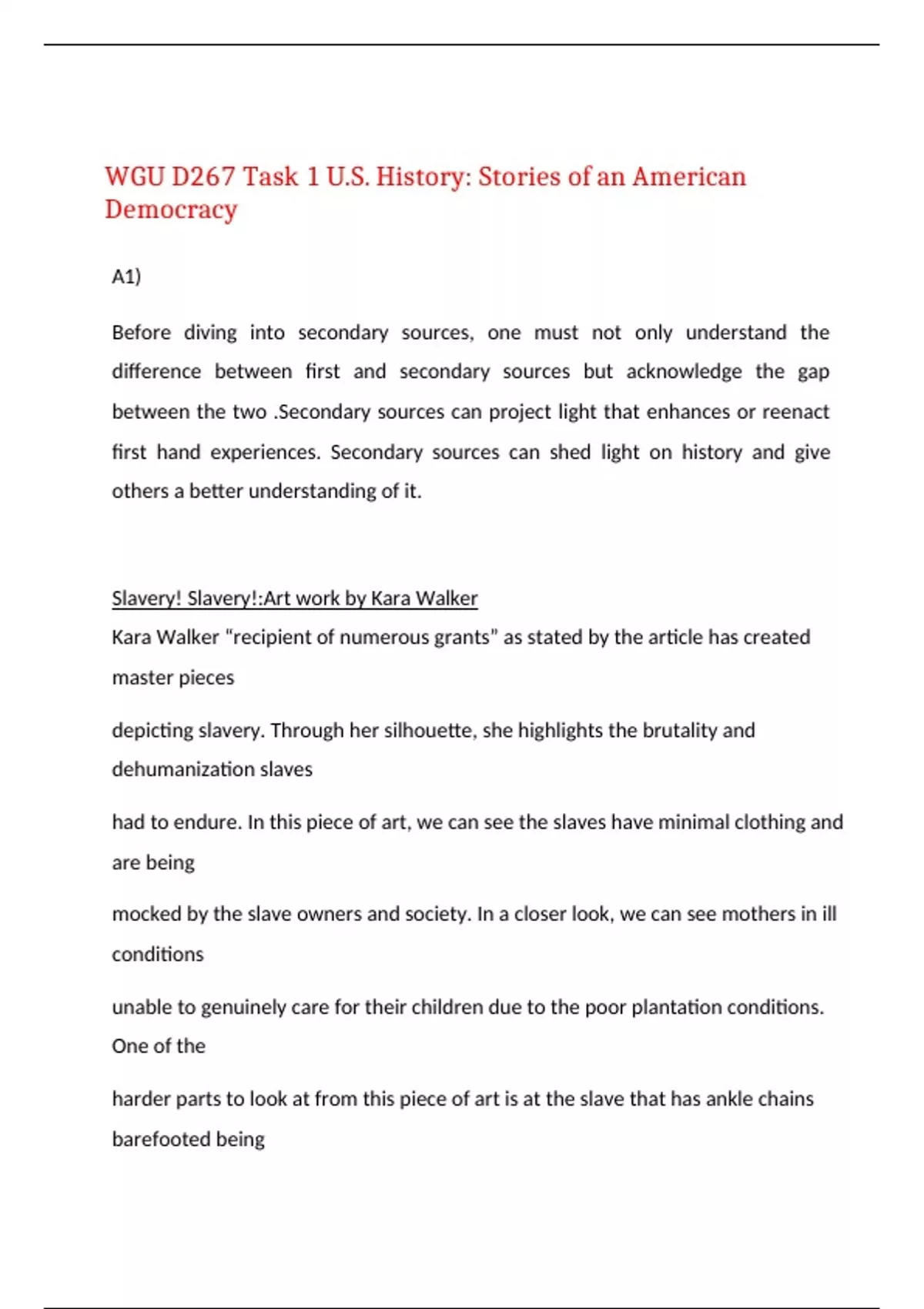 WGU D267 Task 1 U.S. History: Stories of an American Democracy