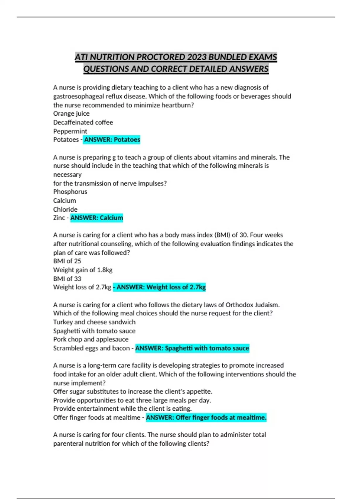ATI NUTRITION PROCTORED 2023 BUNDLED EXAMS