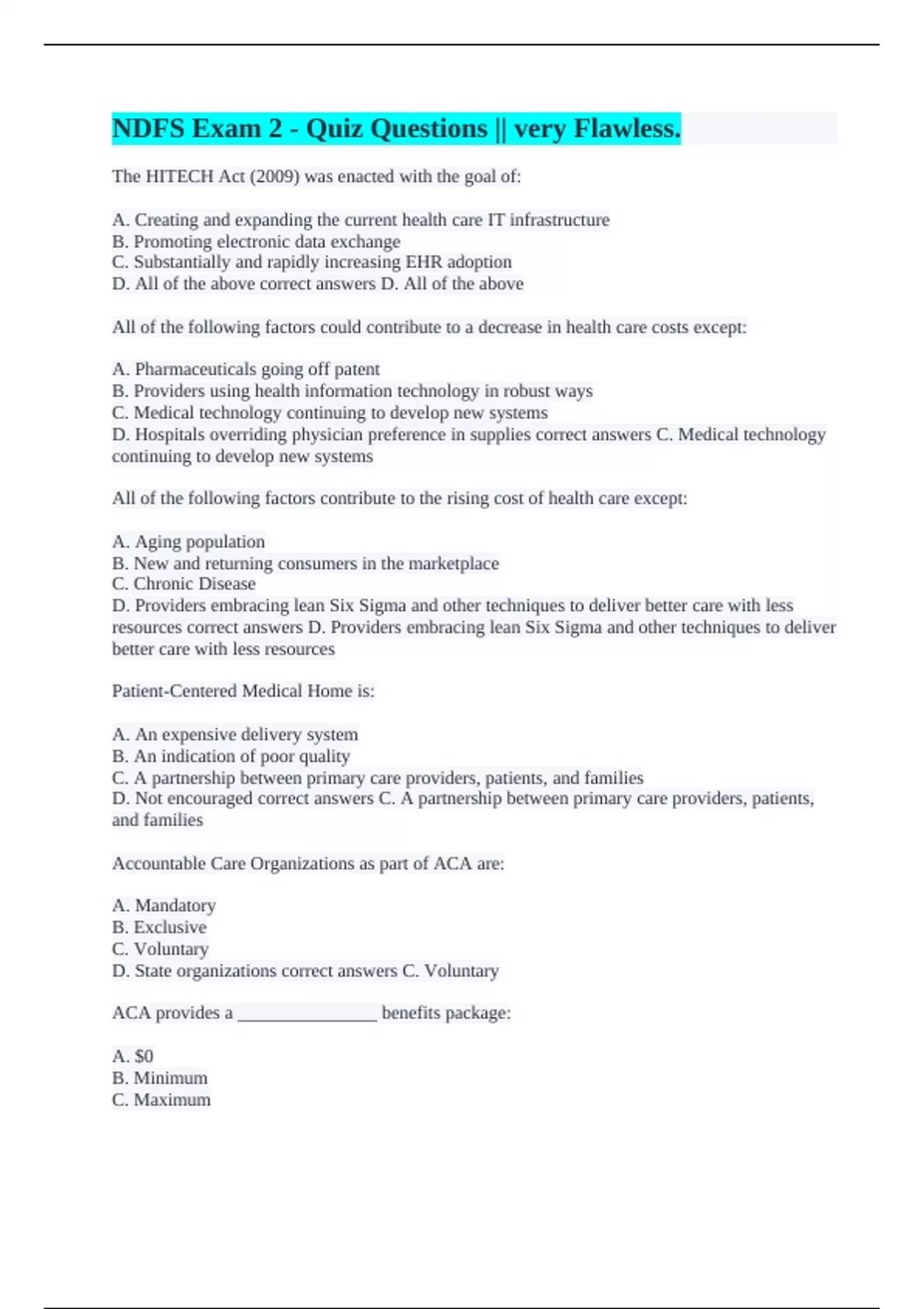resources correct answers D. Providers embracing lean Six Sigma and other techniques to deliver