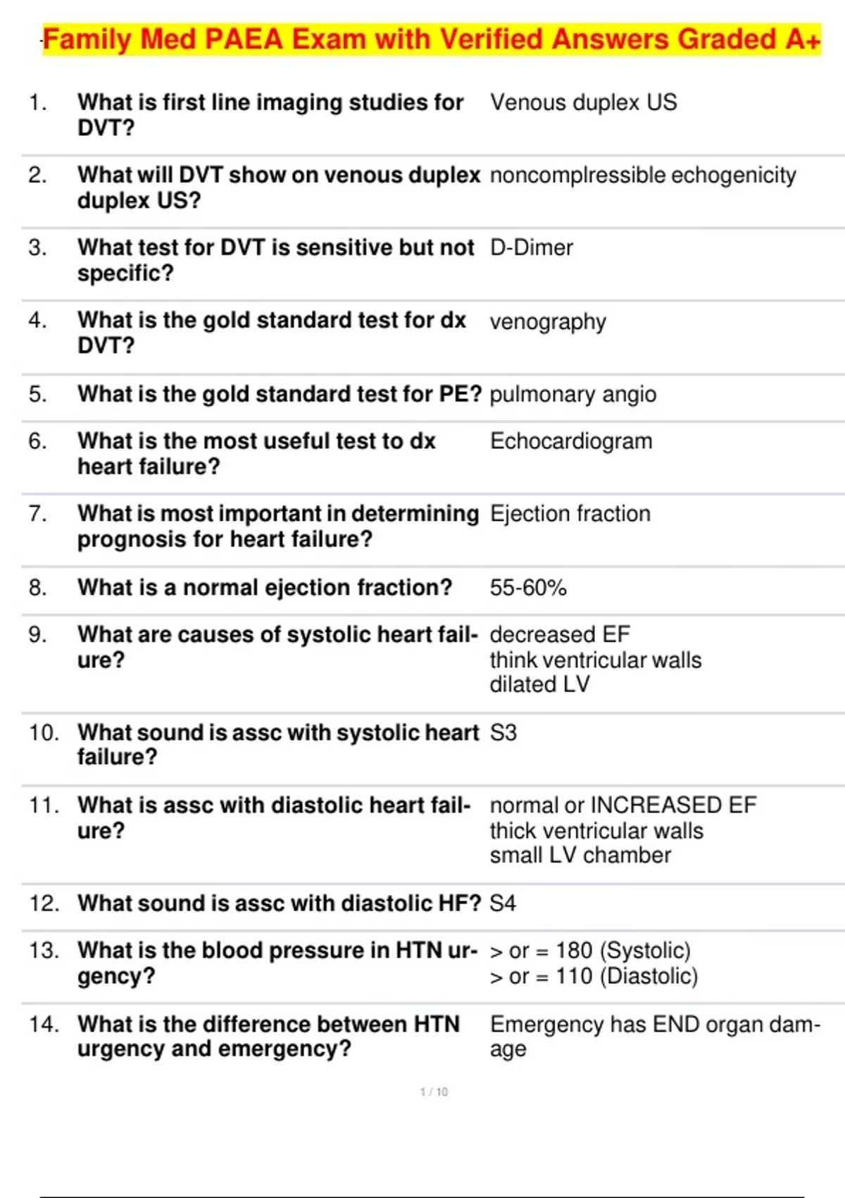 Family Med PAEA Exam with Verified Answers Graded A+ 1. What is first line imaging studies for DVT? 2. What will DVT show on venous duplex duplex US? 3. What test for DVT is sensitive but not specific? 4. What is the gold standard test for dx DVT? Venous duplex US noncomplressible echogenicity D-Dimer venography 5. What is the gold standard test for PE? pulmonary angi
