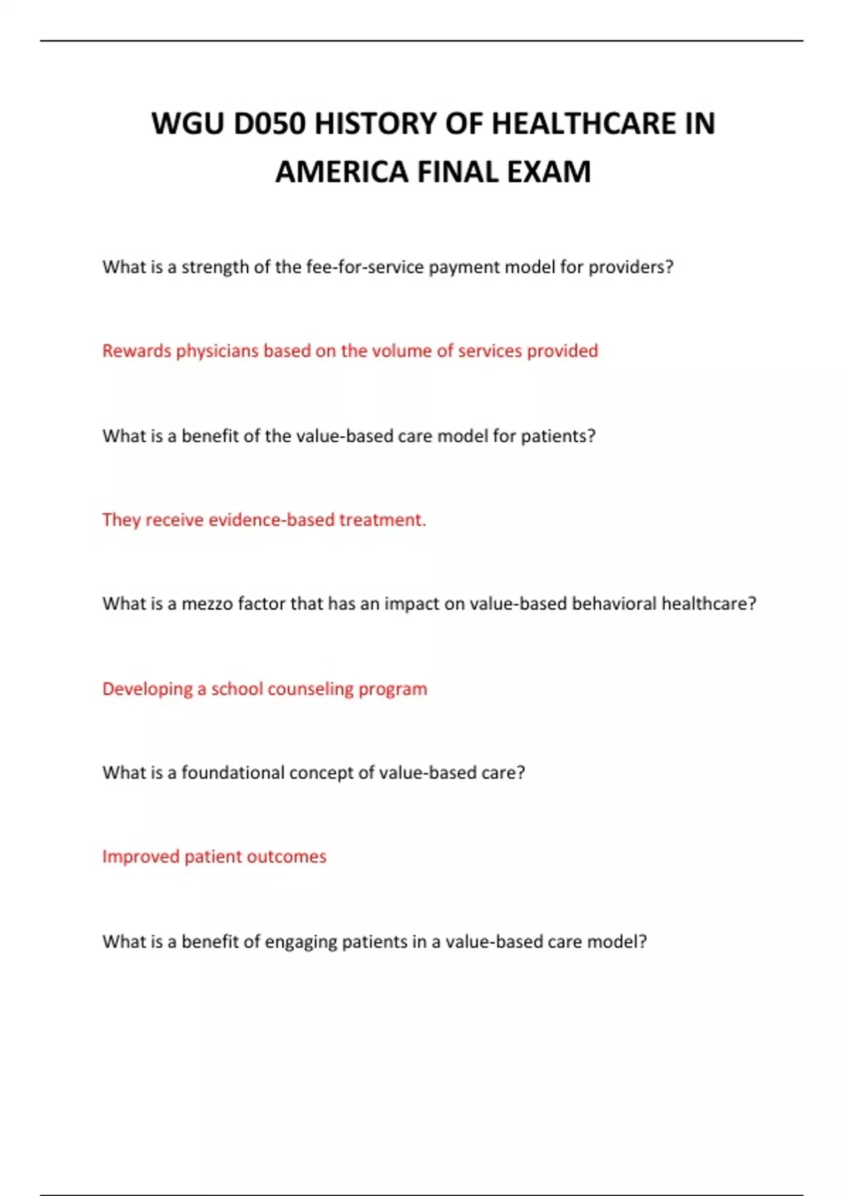 What is a benefit of the value-based care model for patients?