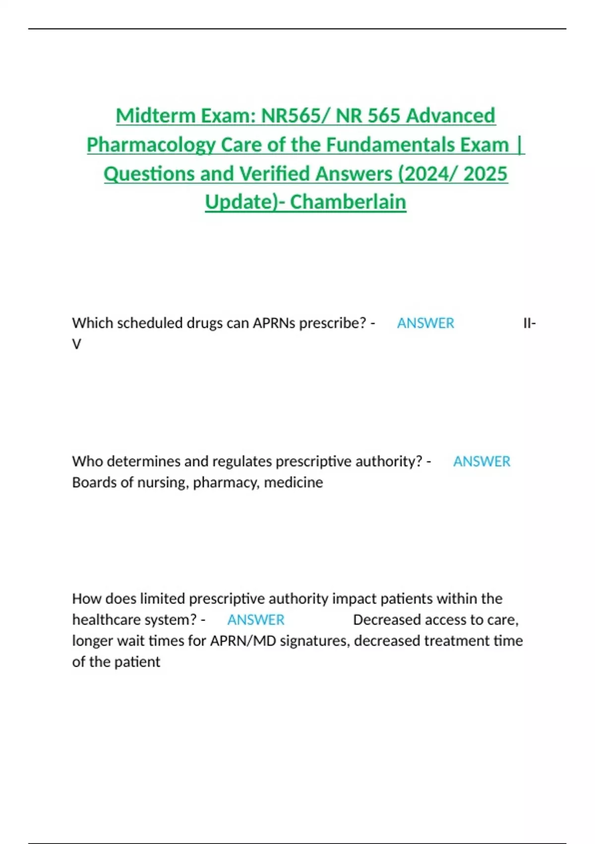 Questions and Verified Answers (2024/ 2025