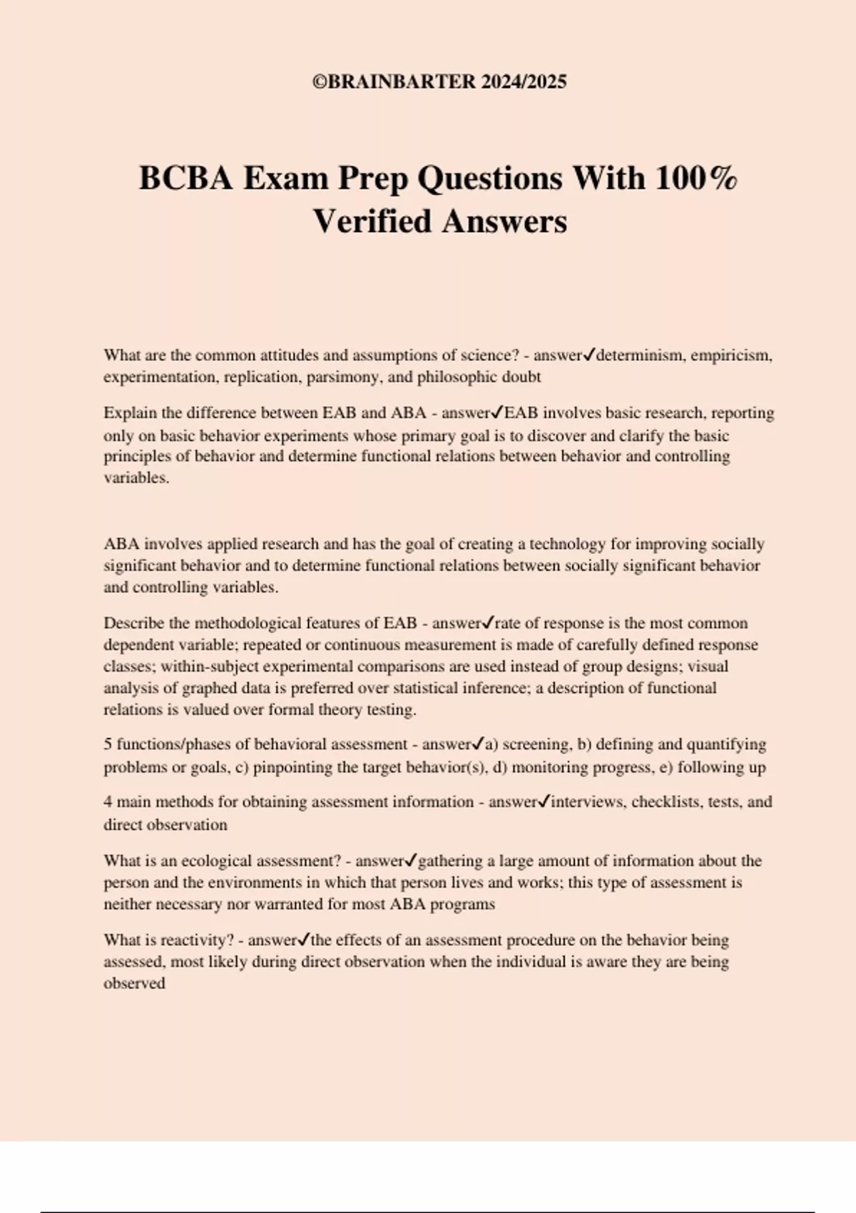 BCBA Exam Prep Questions With 100%