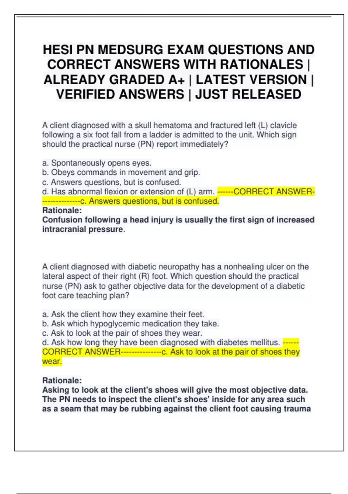 CORRECT ANSWERS WITH RATIONALES |