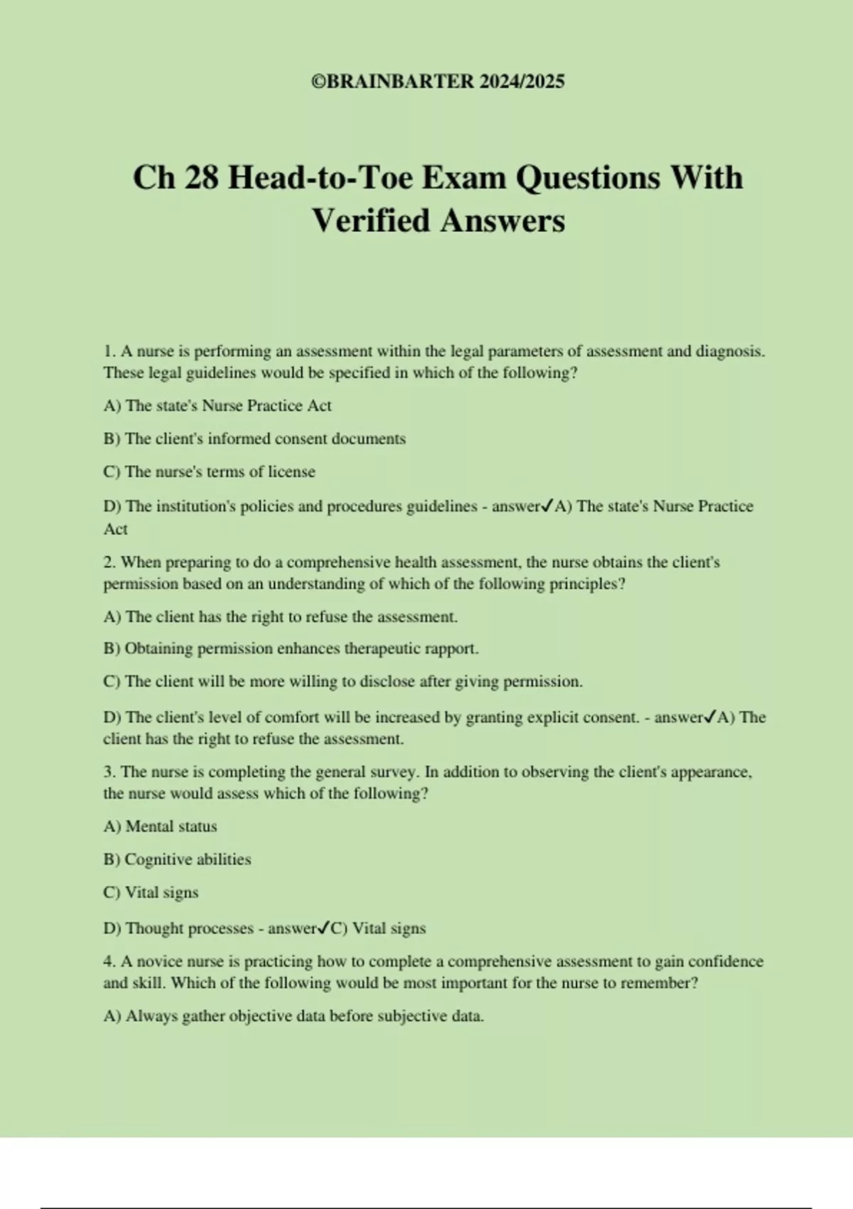 4. A novice nurse is practicing how to complete a comprehensive assessment to gain confidence