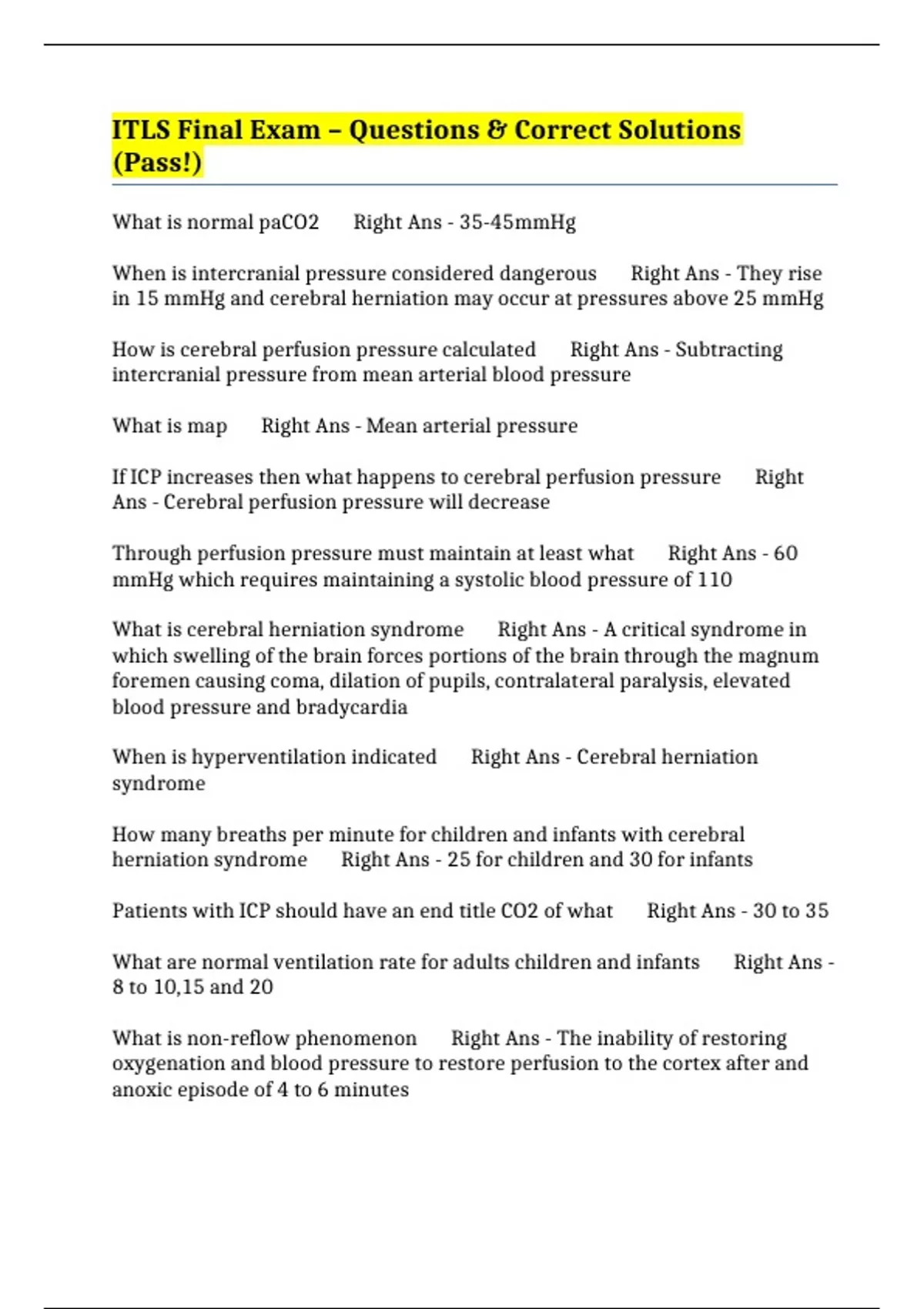ITLS Final Exam – Questions & Correct Solutions (Pass!)
