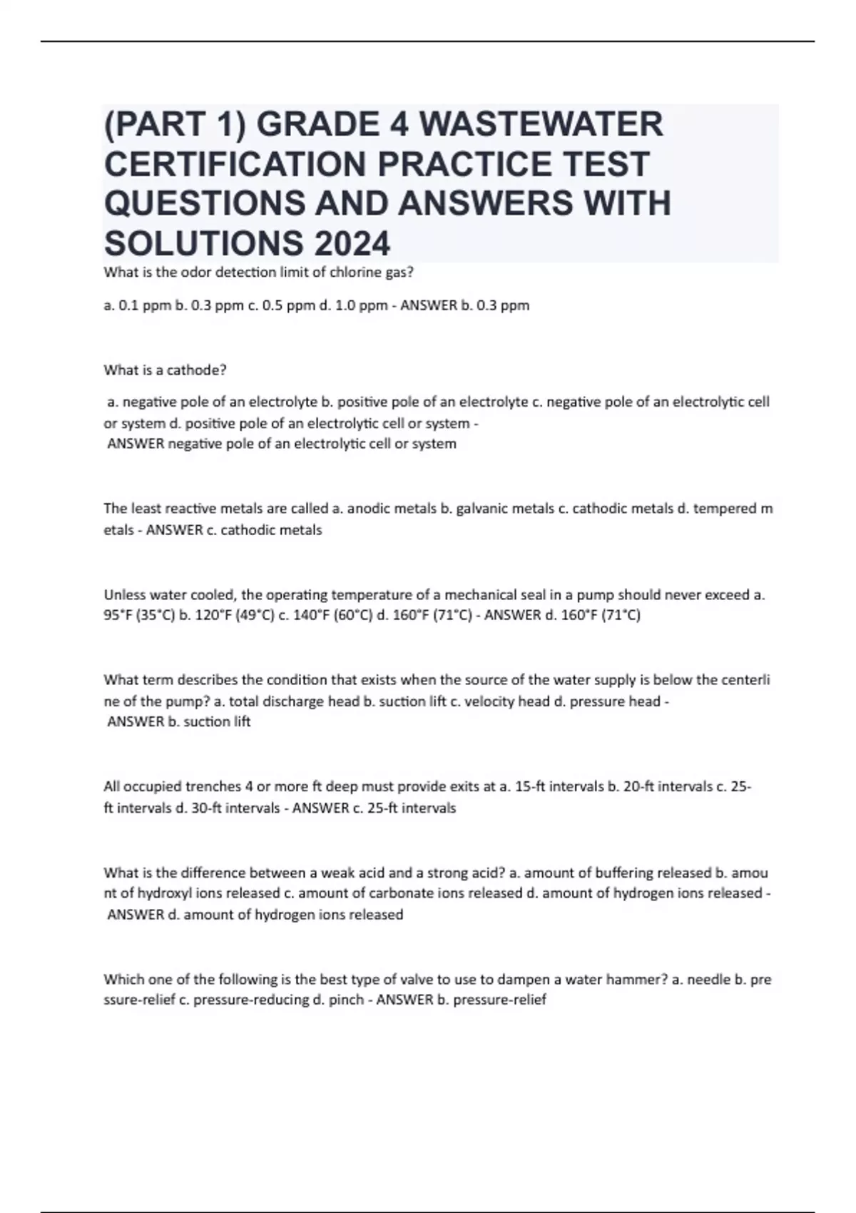 a. 0.1 ppm b. 0.3 ppm c. 0.5 ppm d. 1.0 ppm - ANSWER b. 0.3 ppm