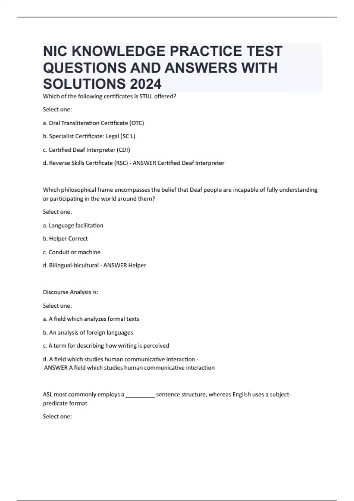 d. Reverse Skills Certificate (RSC) - ANSWER Certified Deaf Interpreter