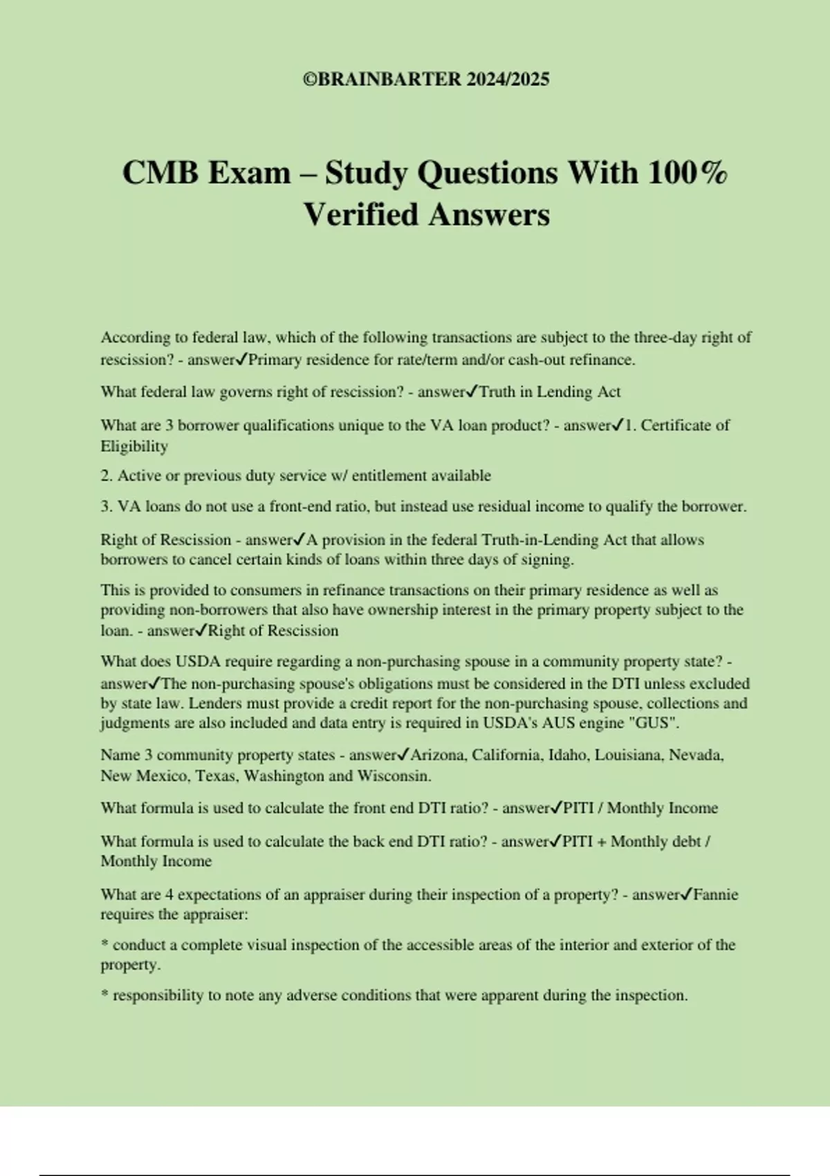 CMB Exam – Study Questions With 100%
