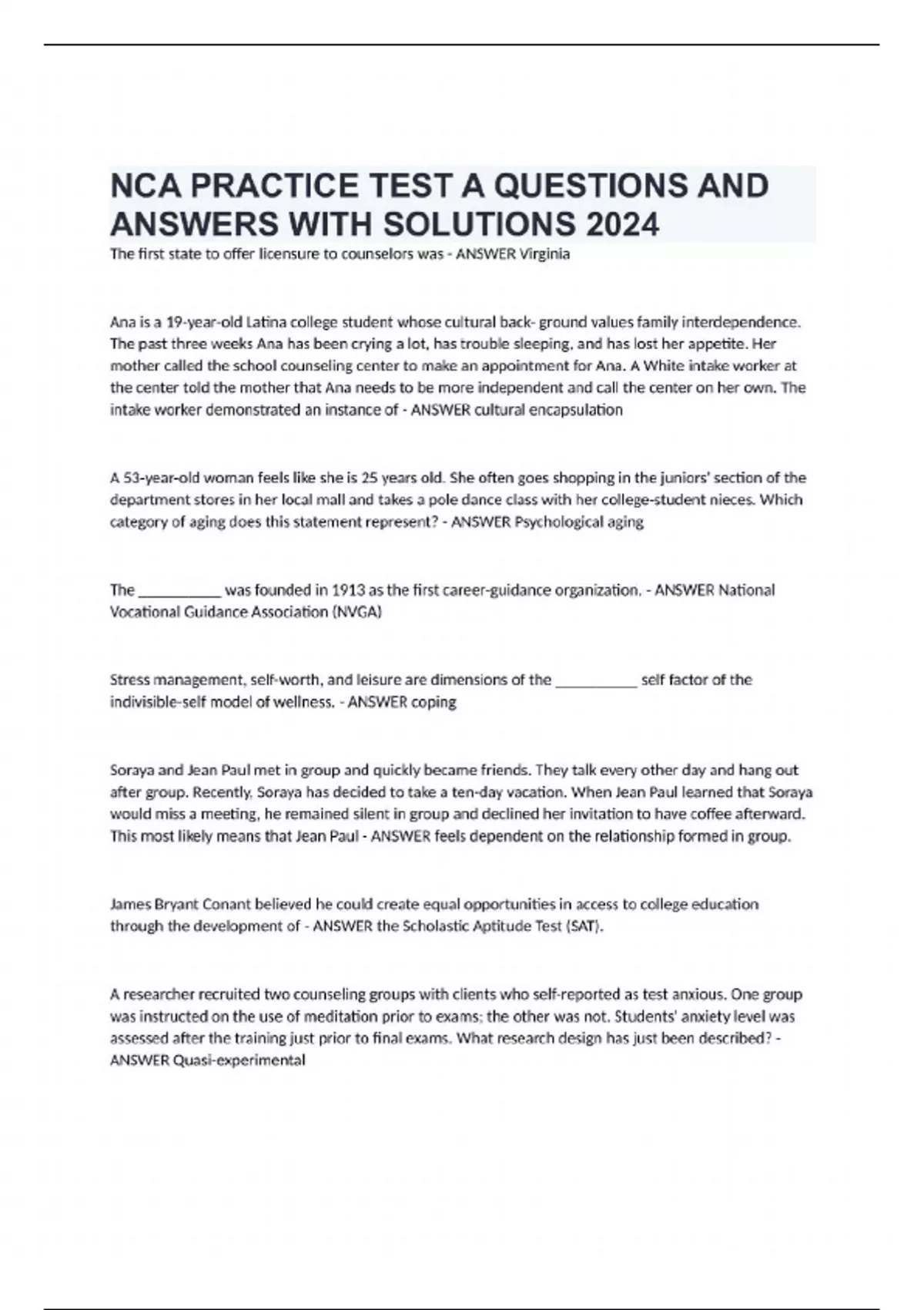 NCA PRACTICE TEST A QUESTIONS AND ANSWERS WITH SOLUTIONS 2024