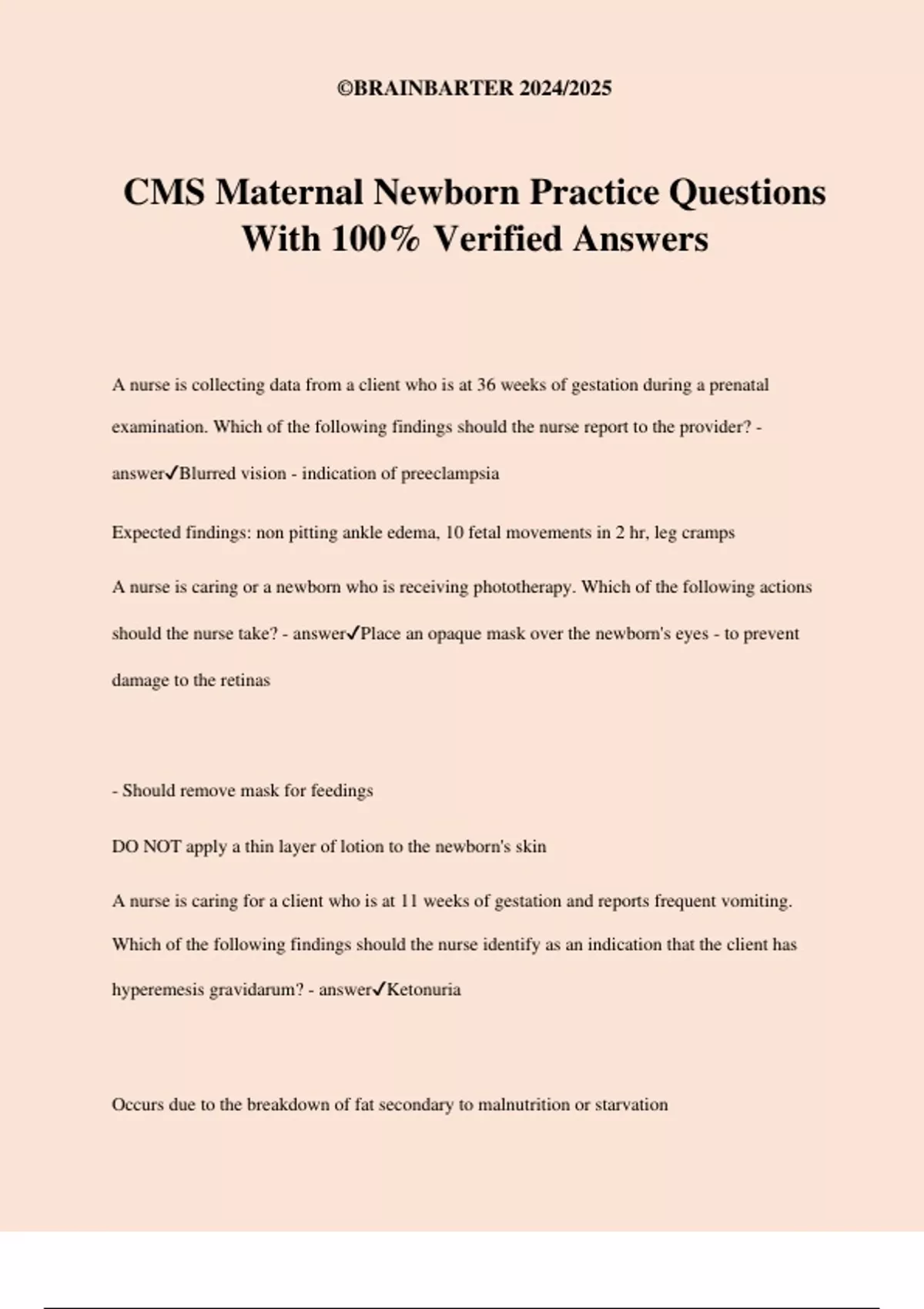 CMS Maternal Newborn Practice Questions