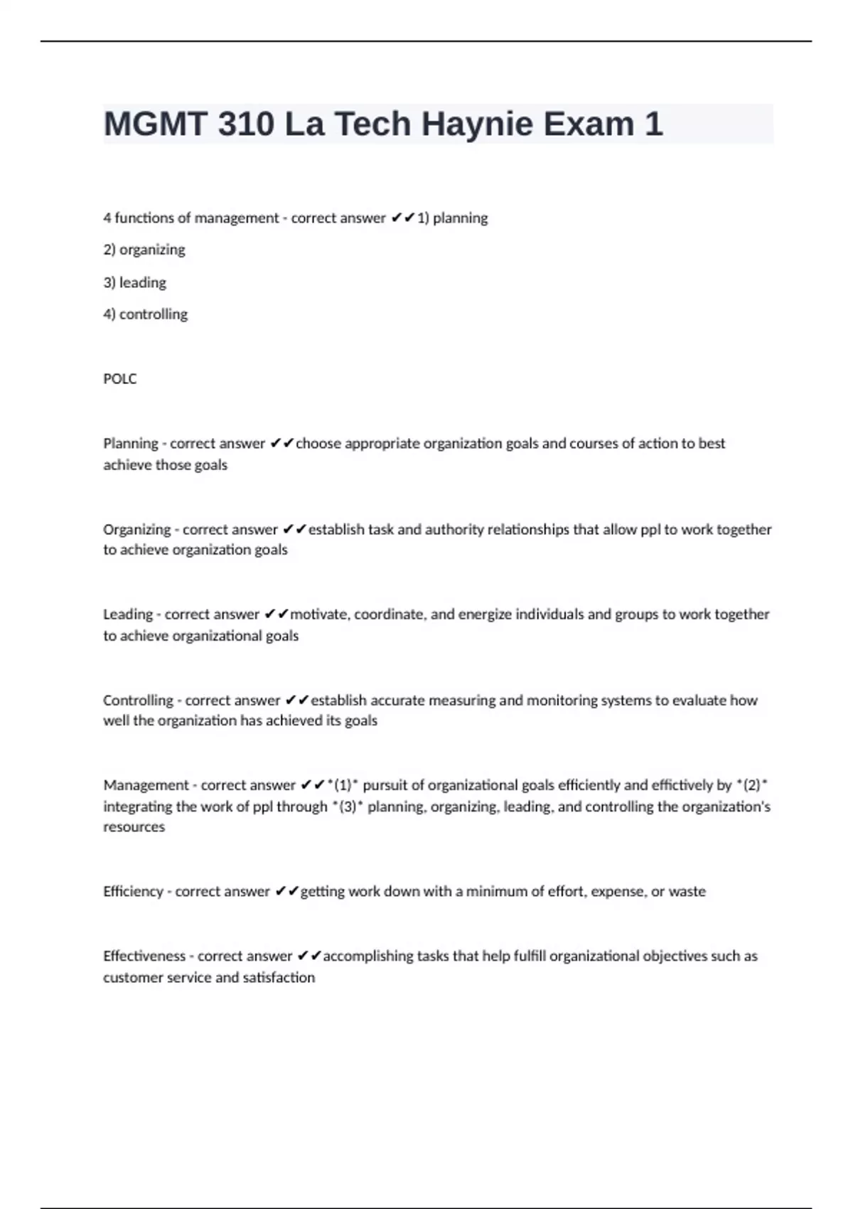 Controlling - correct answer ✔✔establish accurate measuring and monitoring systems to evaluate how