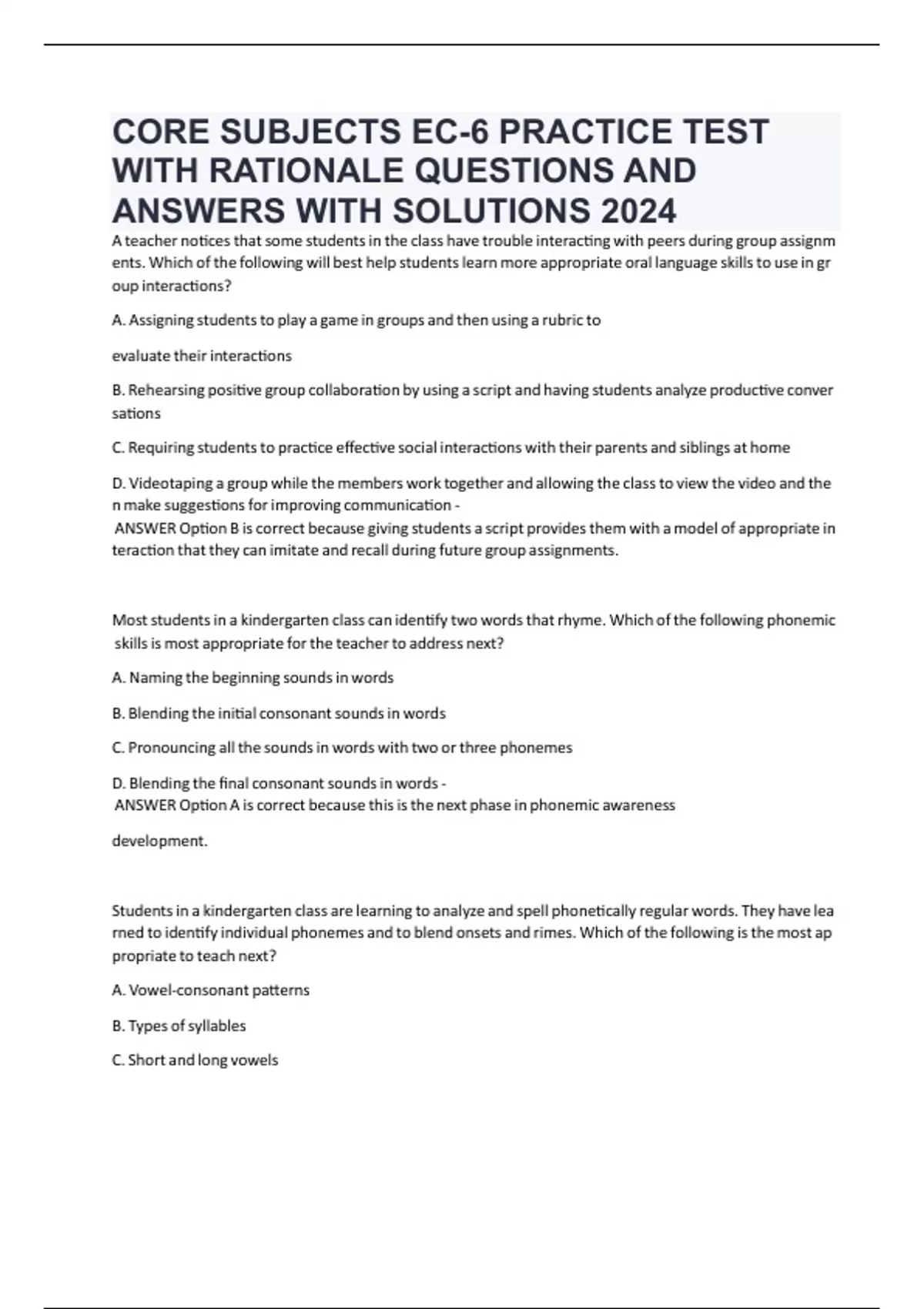 ANSWER Option C is correct because once students have learned the individual sounds made by letters an