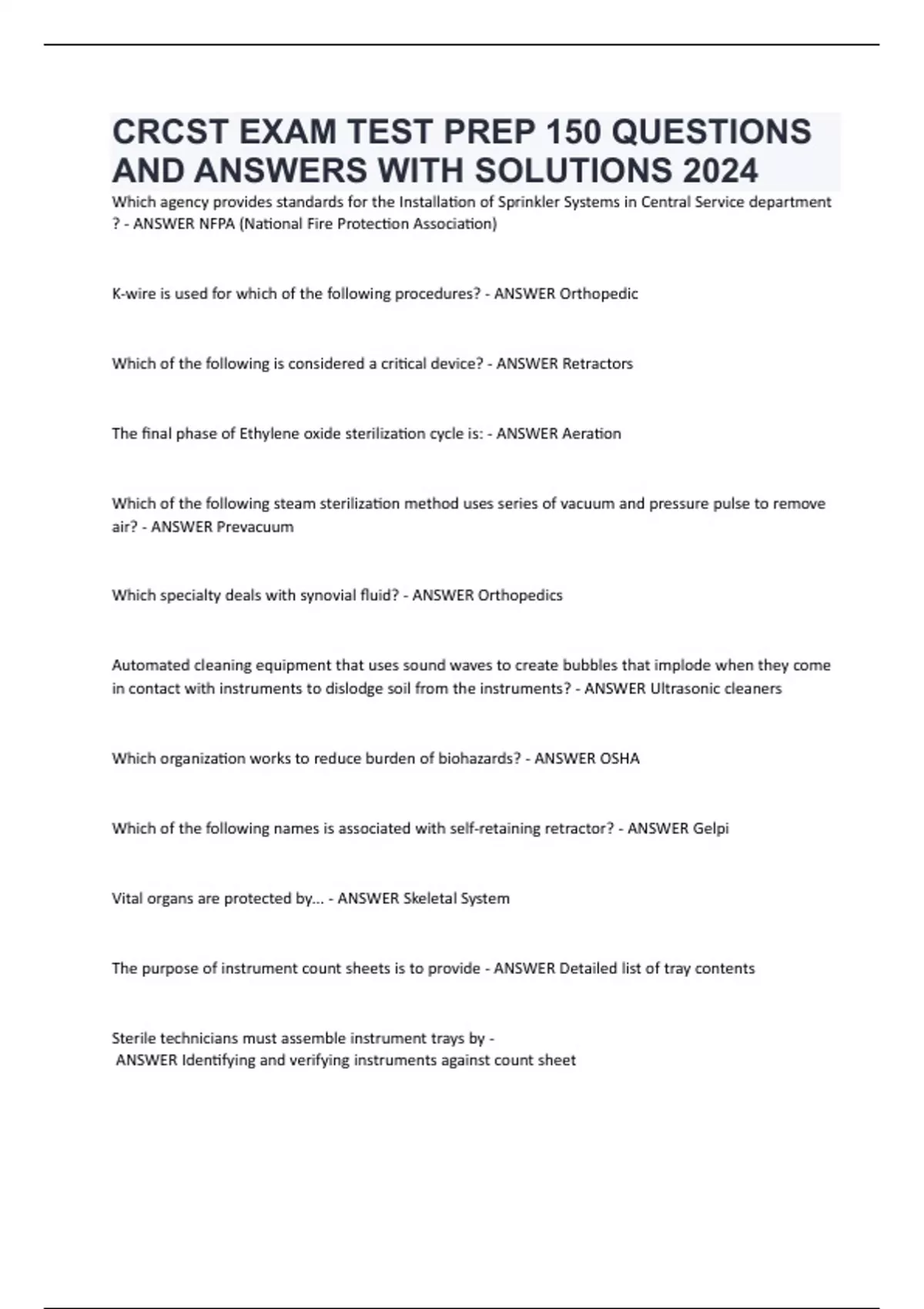 The purpose of instrument count sheets is to provide - ANSWER Detailed list of tray contents