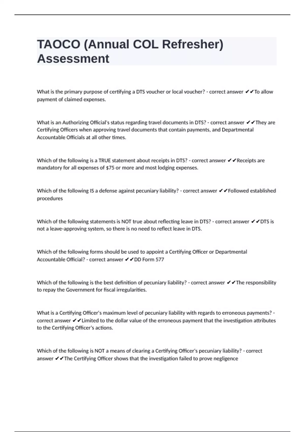 TAOCO (Annual COL Refresher) Assessment fully solved