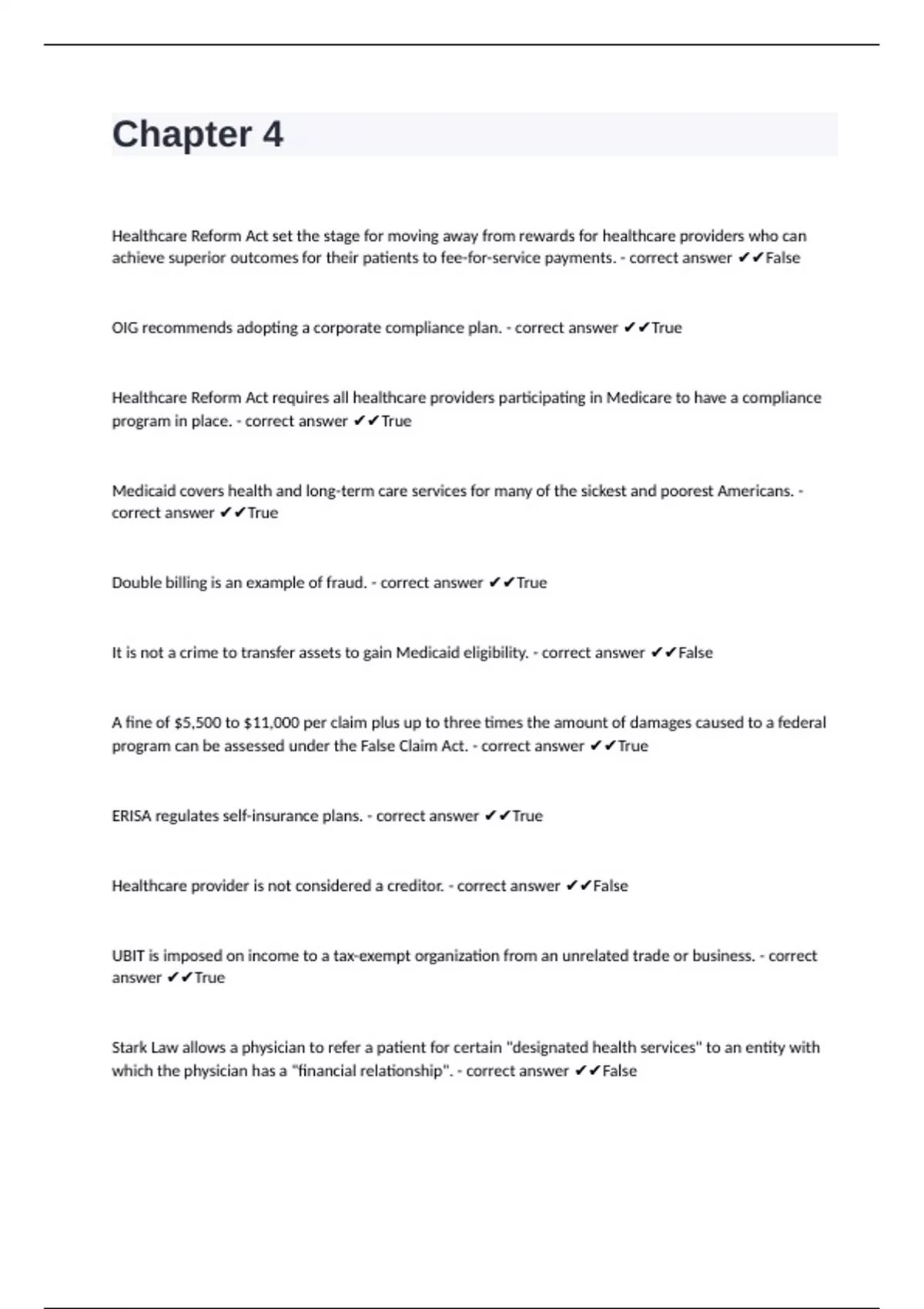 OIG recommends adopting a corporate compliance plan. - correct answer ✔✔True