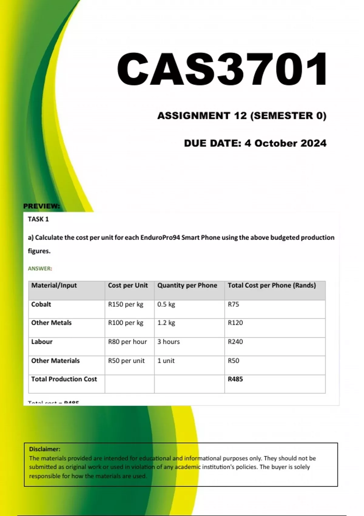 CAS3701 Assignment 12 (COMPLETE ANSWERS) 2024 - DUE 4 October 2024