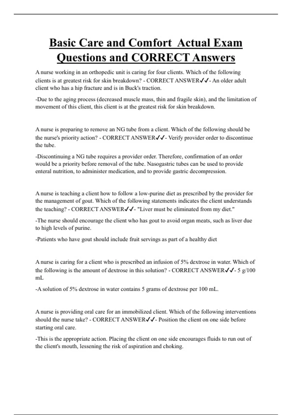 Basic Care and Comfort Actual Exam Questions and CORRECT Answers