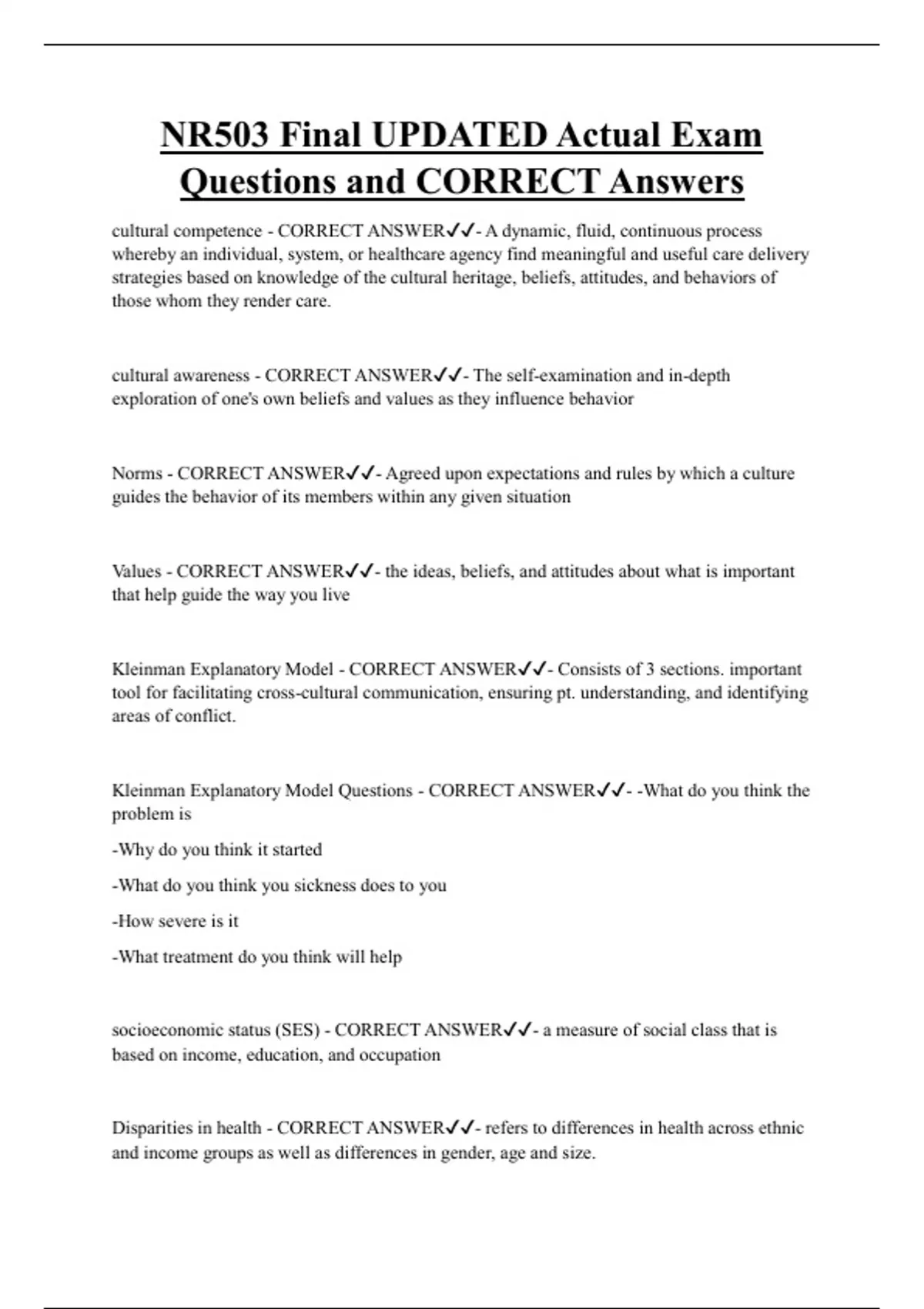 cultural competence - CORRECT ANSWER✔✔- A dynamic, fluid, continuous process