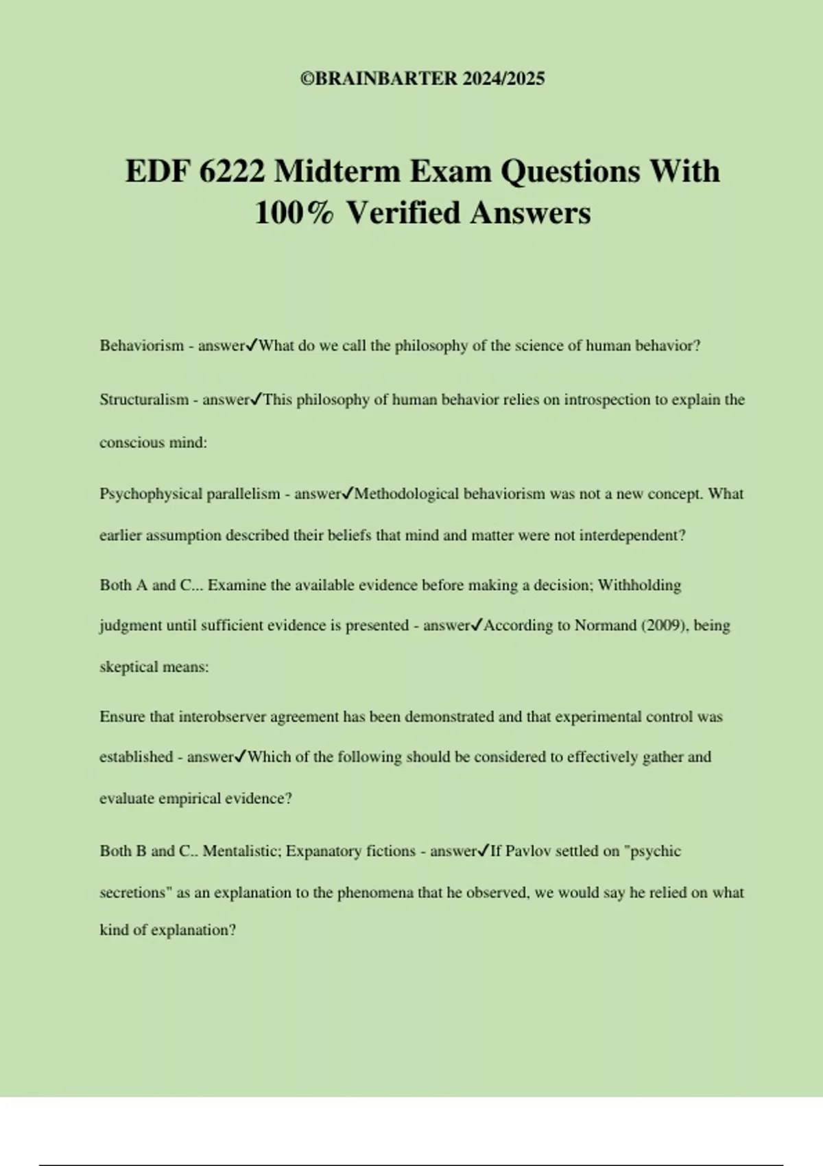 Both B and C.. Mentalistic; Expanatory fictions - answer✔If Pavlov settled on "psychic