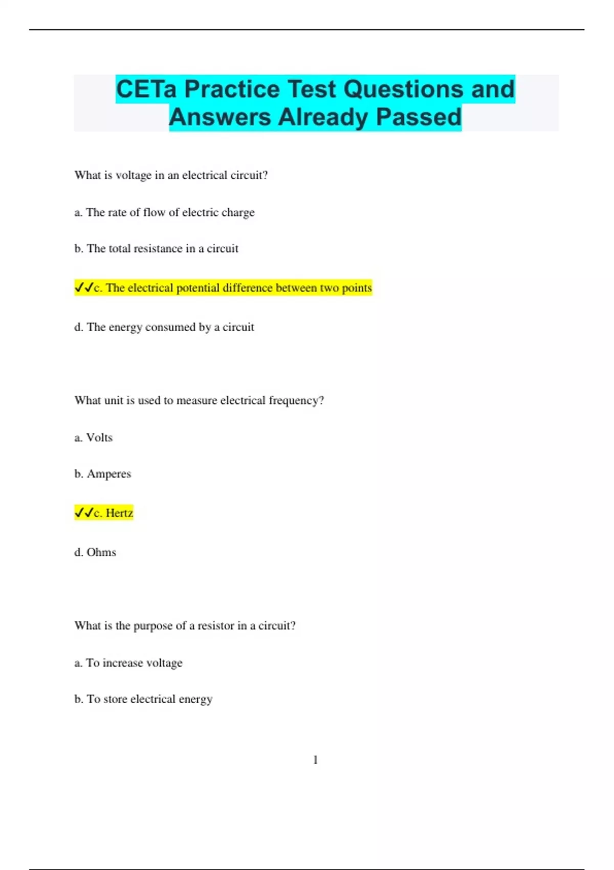 ✔✔c. Hertz