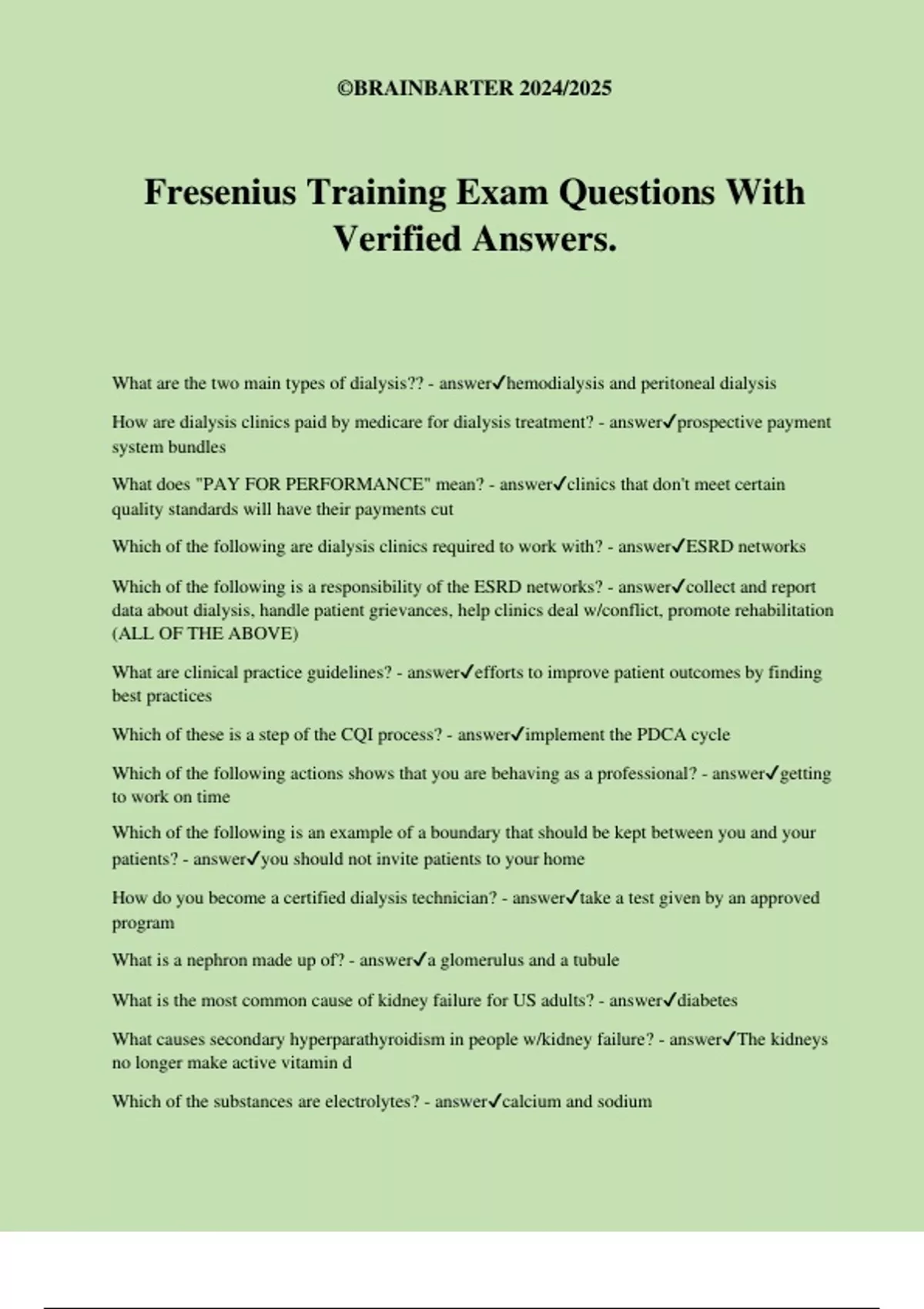 Fresenius Training Exam Questions With