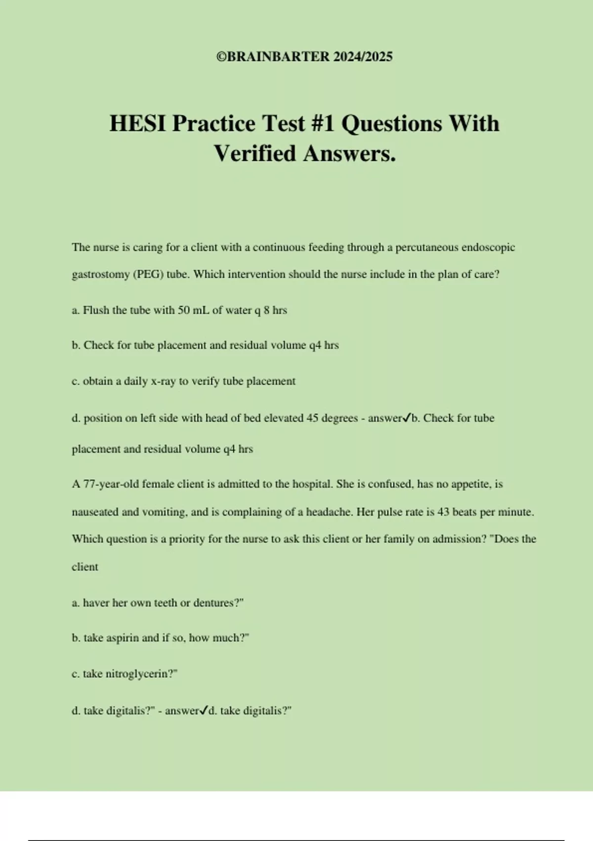 d. take digitalis?" - answer✔d. take digitalis?"