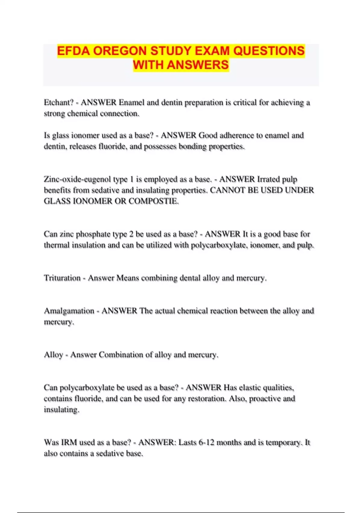 EFDA OREGON STUDY EXAM QUESTIONS WITH ANSWERS...