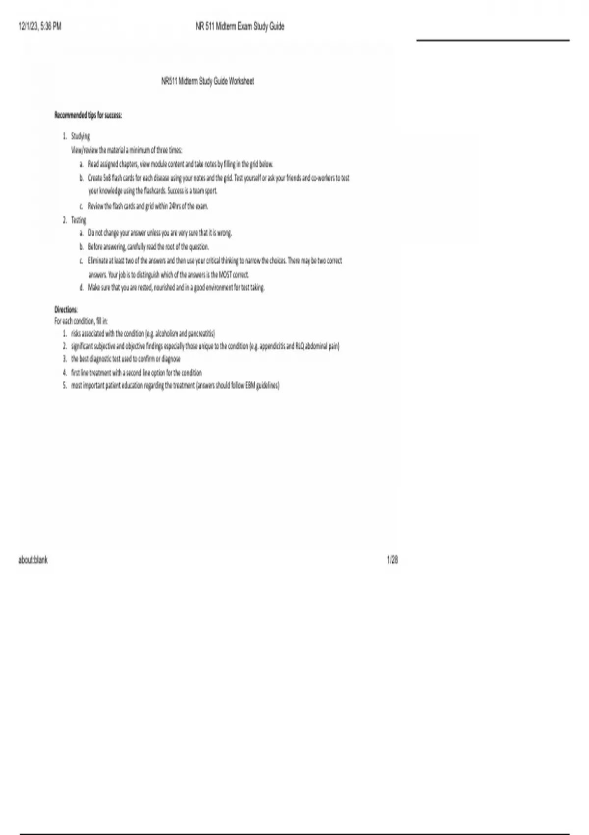 NR511 Midterm Study Guide Worksheet
