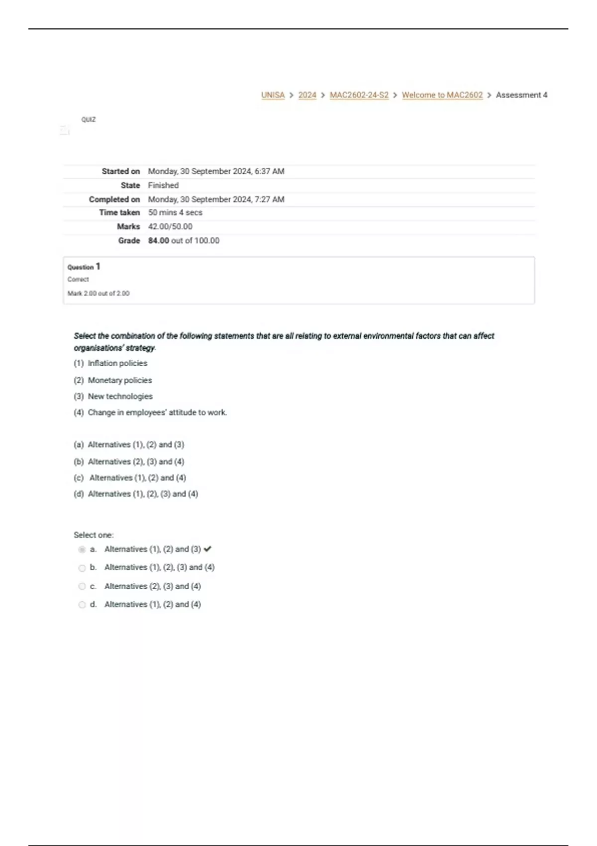 MAC2602 Assignment 4 Semester 2 2024 (84%) Principles of Strategy Risk & Financial Management Techniques (MAC2602)