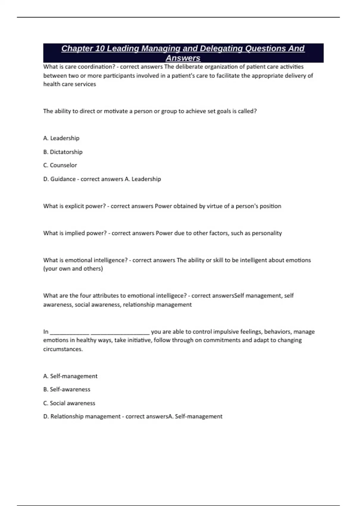 What is explicit power? - correct answers Power obtained by virtue of a person's position