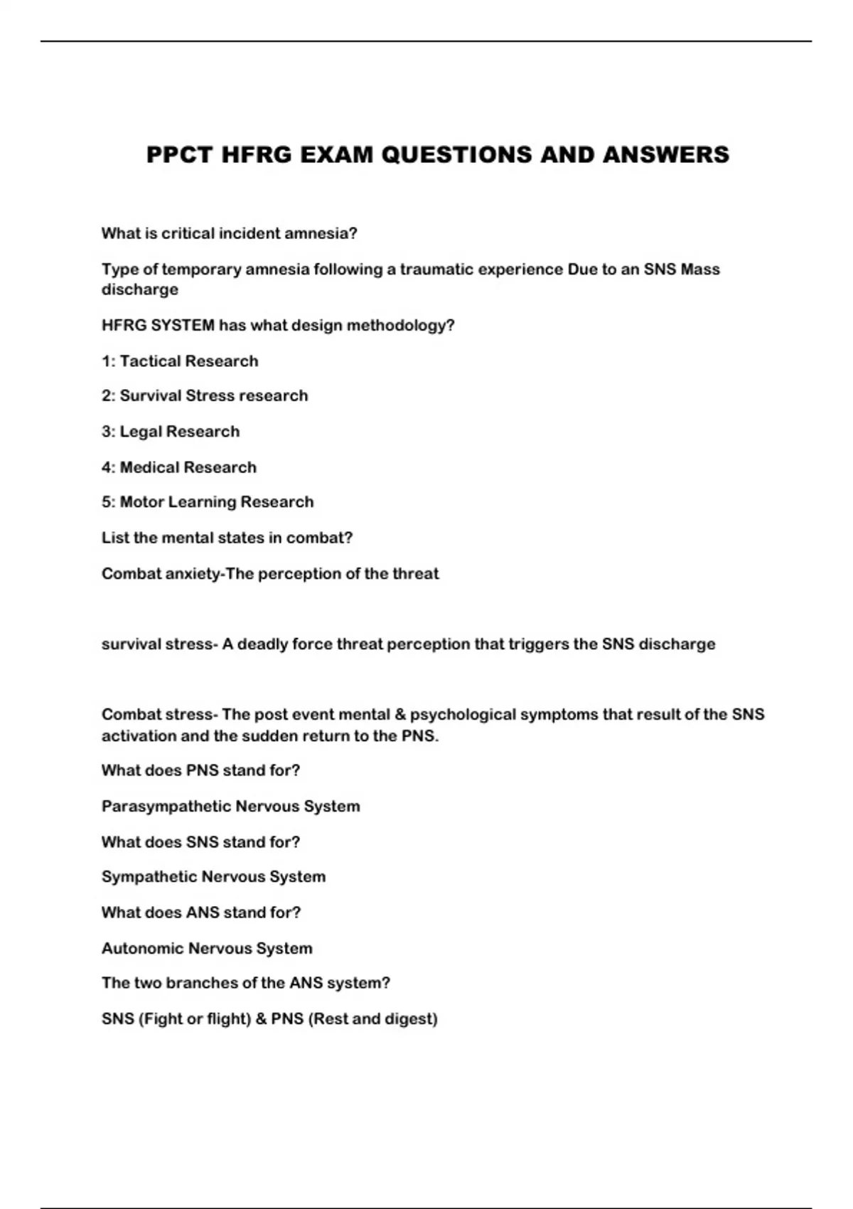 PPCT HFRG EXAM QUESTIONS AND ANSWERS