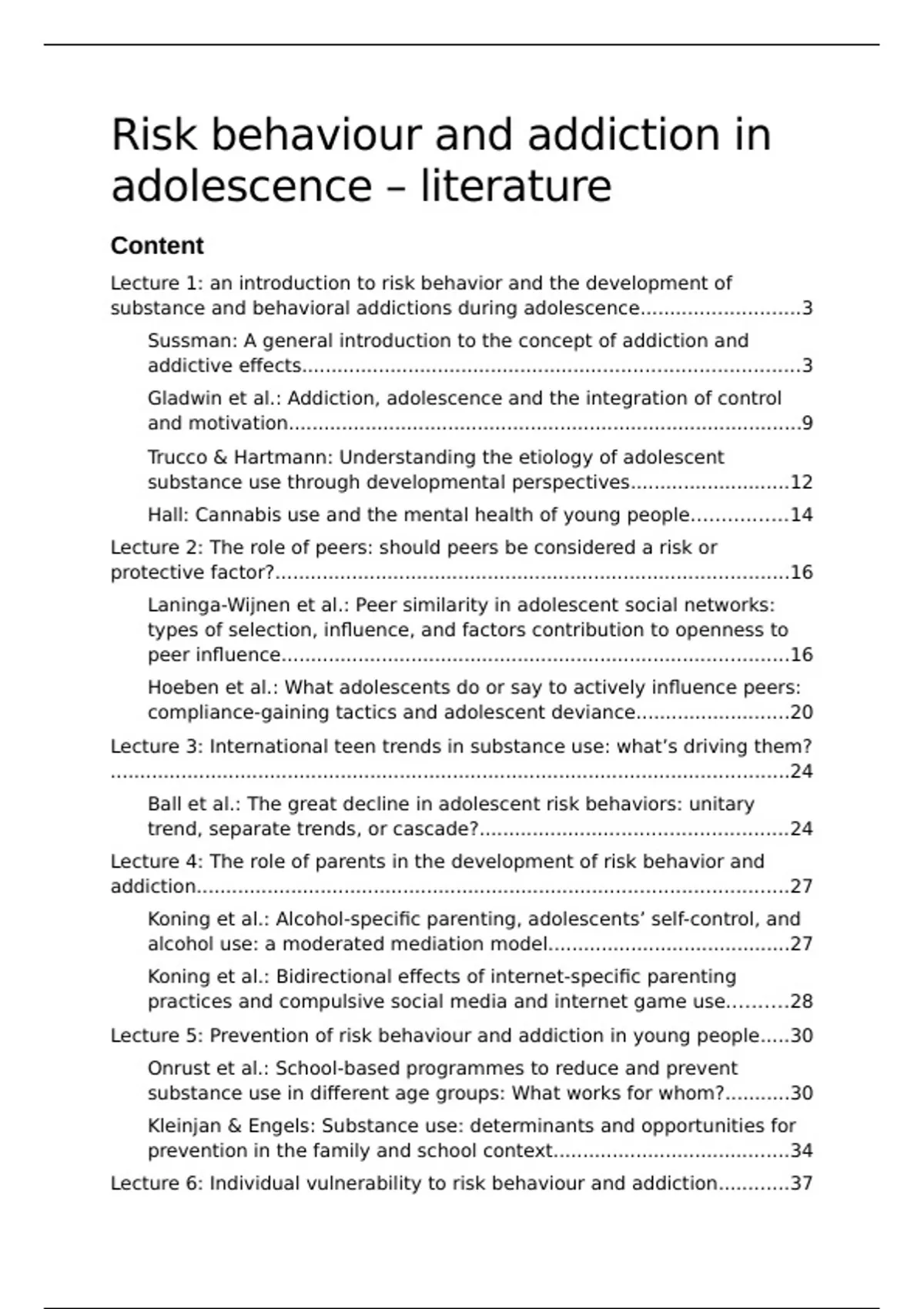 Lecture 5: Prevention of risk behaviour and addiction in young people.....30