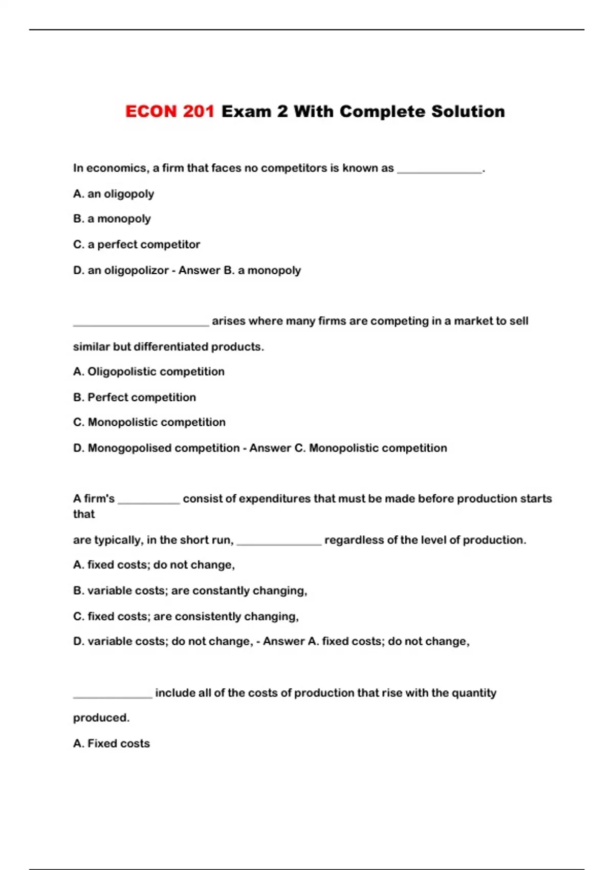 D. variable costs; do not change, - Answer A. fixed costs; do not change,