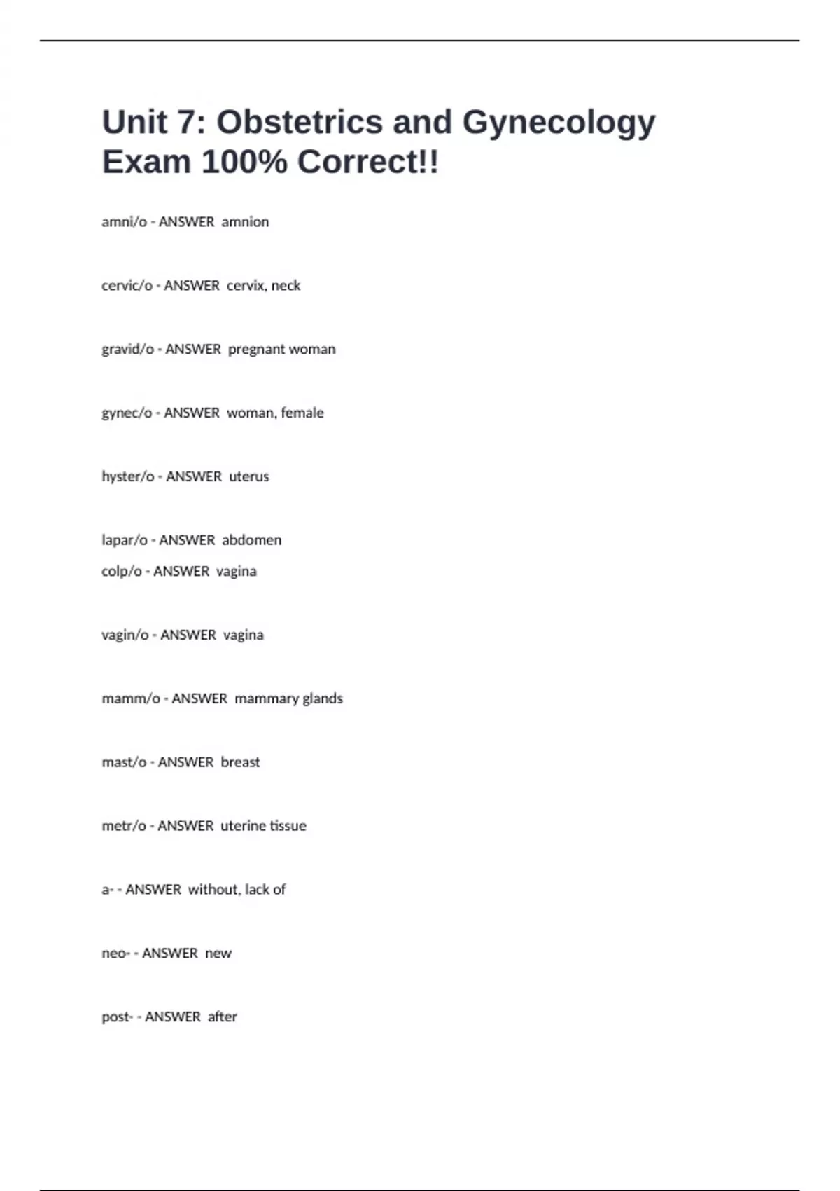 Unit 7: Obstetrics and Gynecology Exam 100% Correct!!