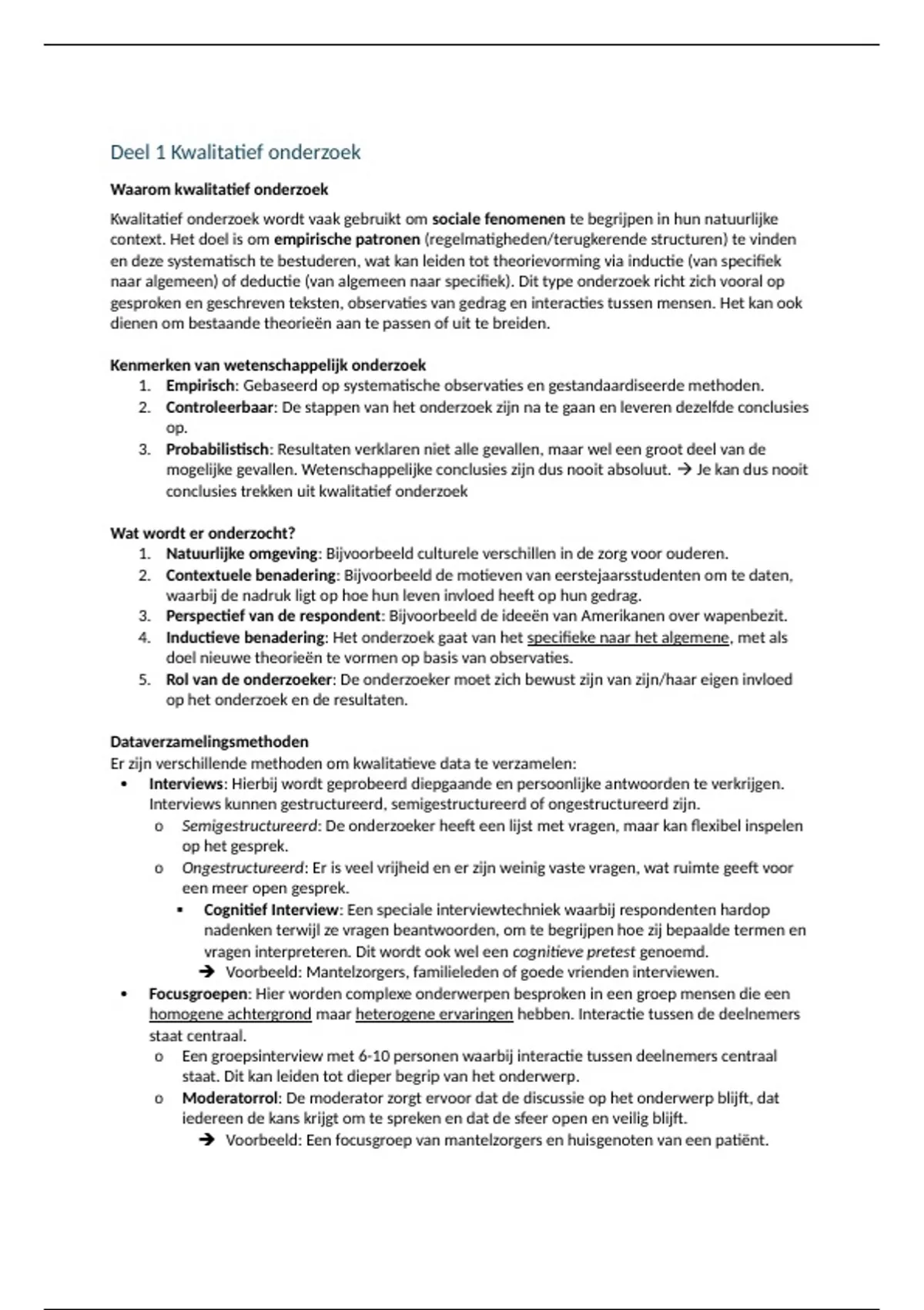 o Semigestructureerd: De onderzoeker heeft een lijst met vragen, maar kan flexibel inspelen