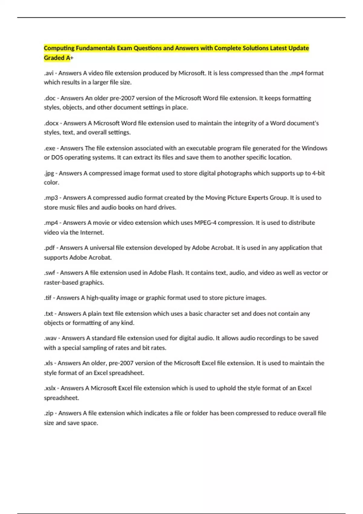 .txt - Answers A plain text file extension which uses a basic character set and does not contain any