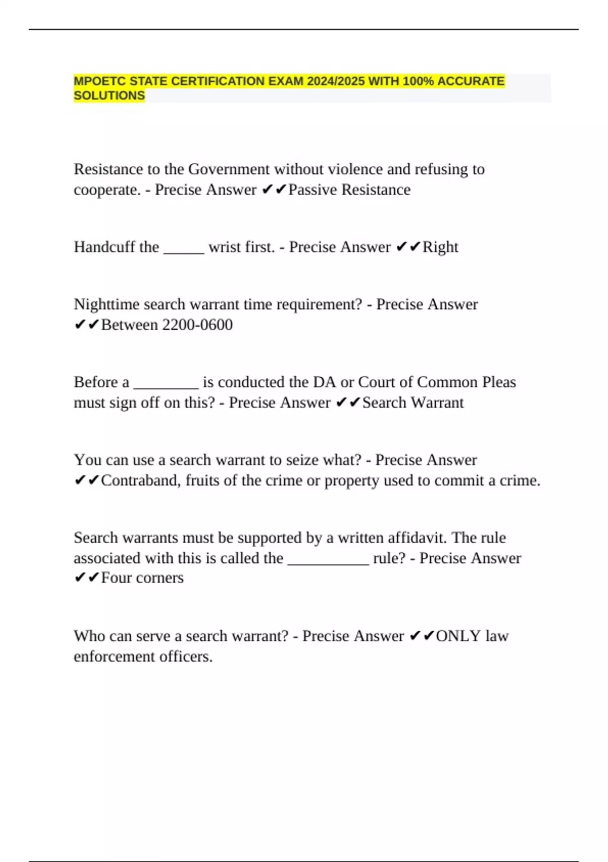 MPOETC STATE CERTIFICATION EXAM 2024/2025 WITH 100% ACCURATE