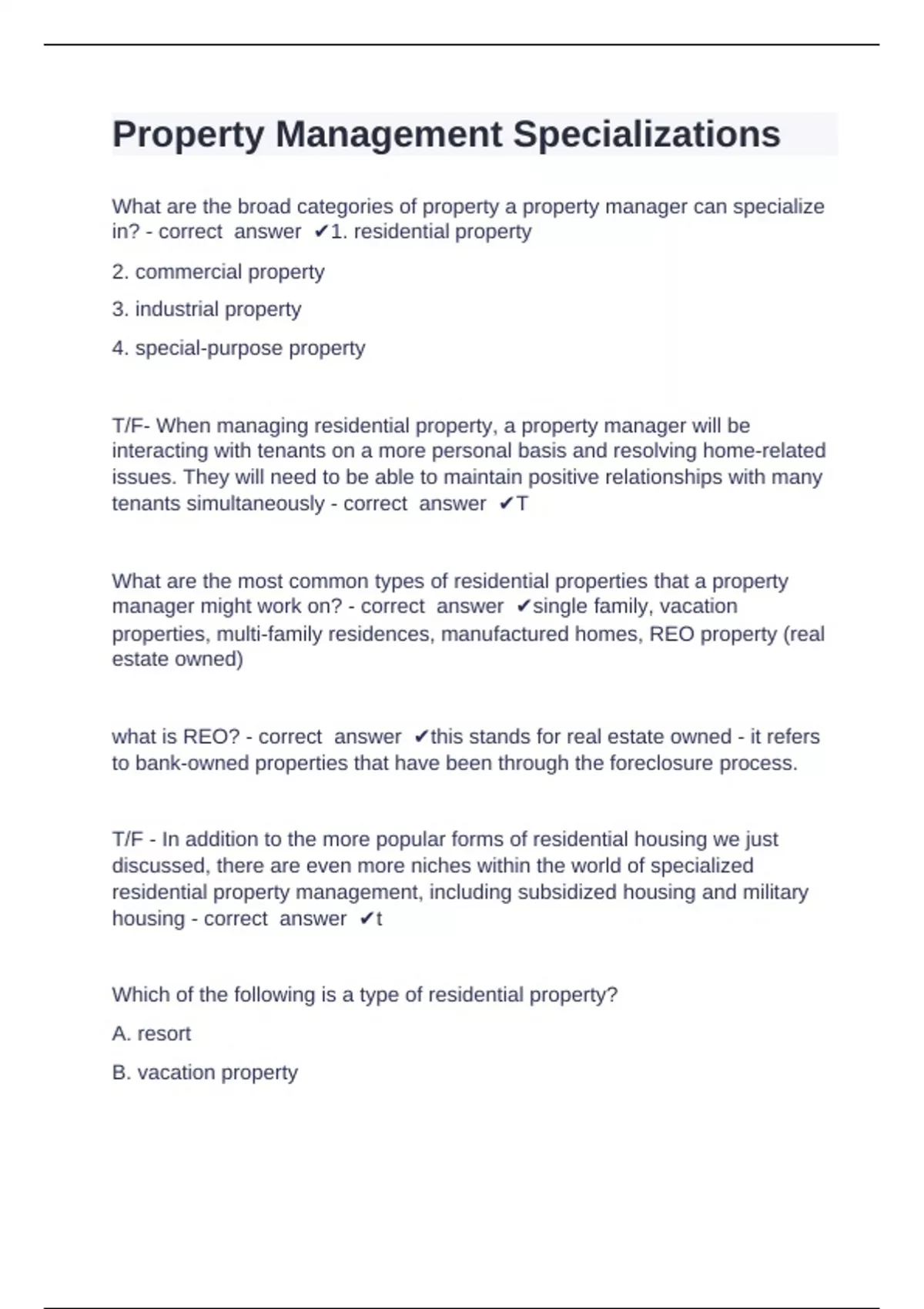 in? - correct answer ✔1. residential property