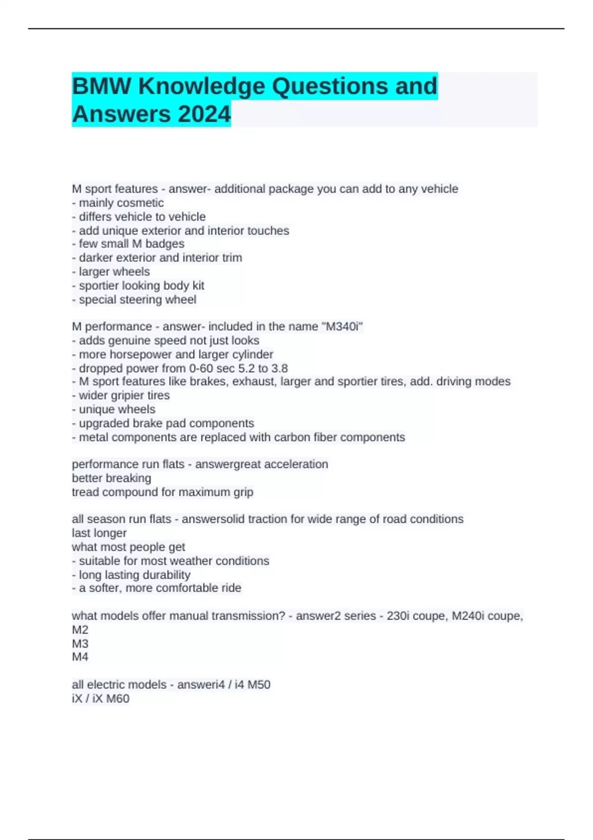 - M sport features like brakes, exhaust, larger and sportier tires, add. driving modes