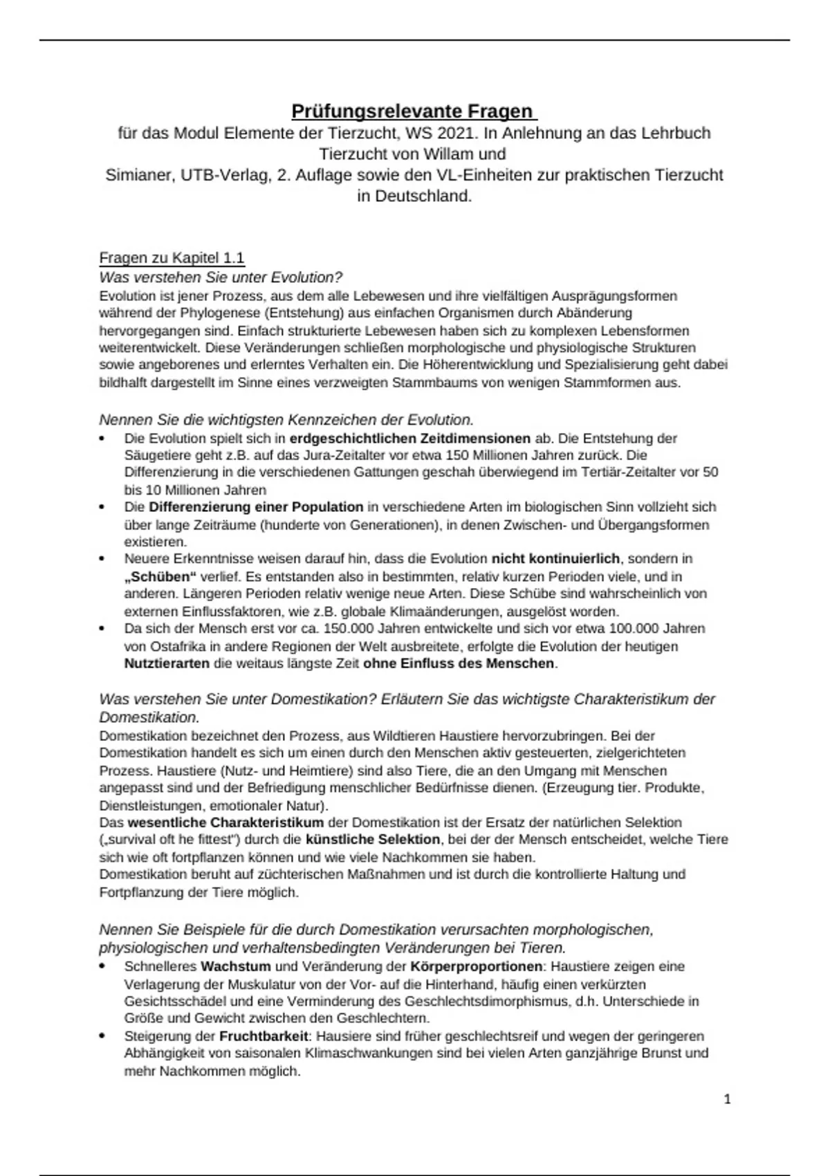 für das Modul Elemente der Tierzucht, WS 2021. In Anlehnung an das Lehrbuch