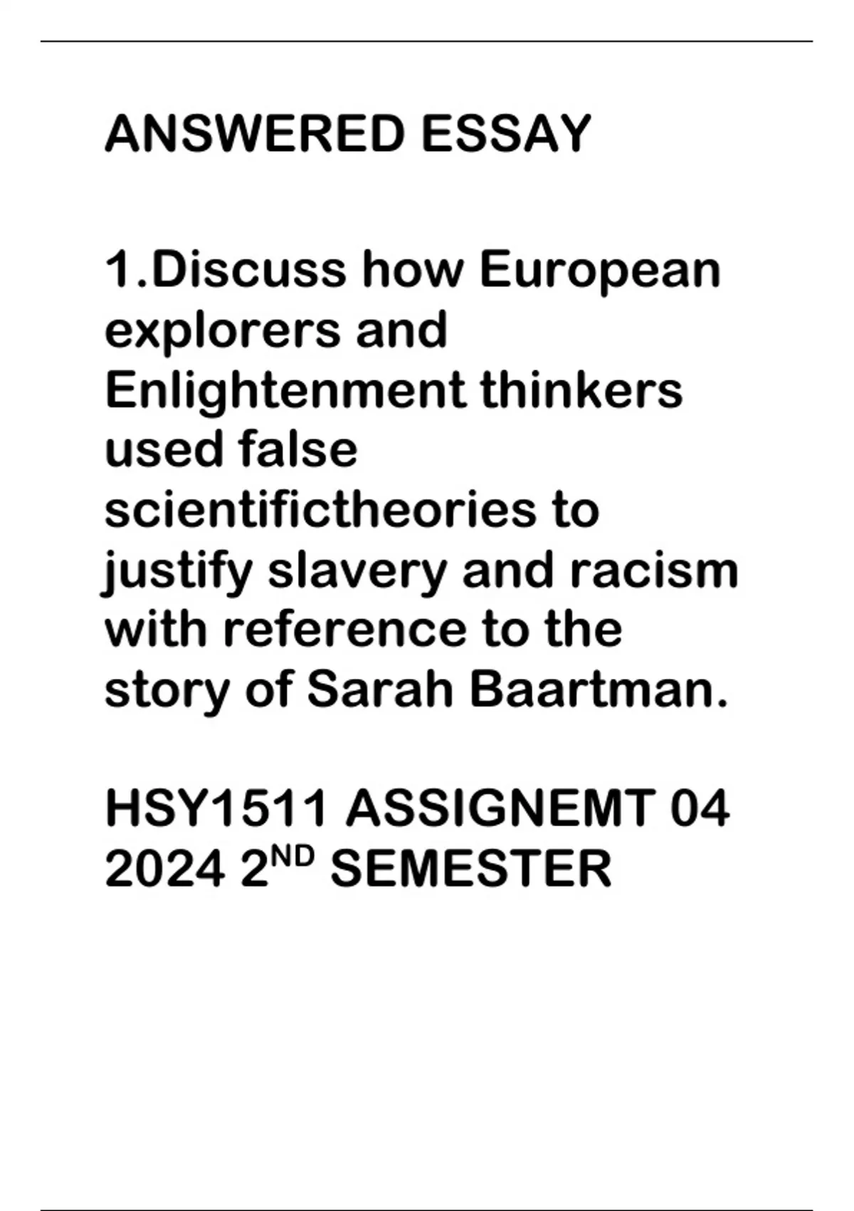 Discuss how European explorers and Enlightenment thinkers used false scientifictheories to justify slavery and racism with reference to the story of Sarah Baartman.