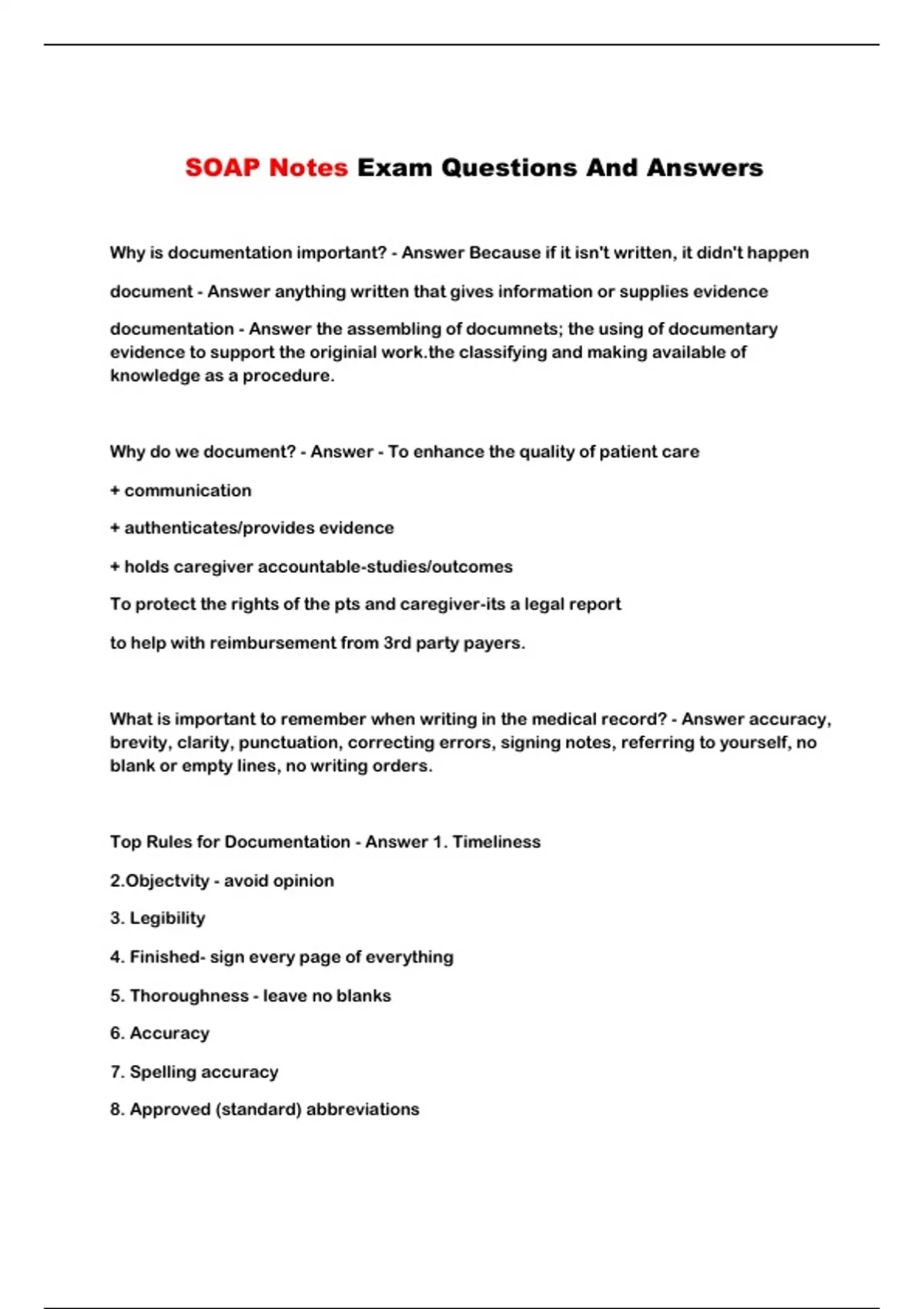 SOAP Notes Exam Questions And Answers