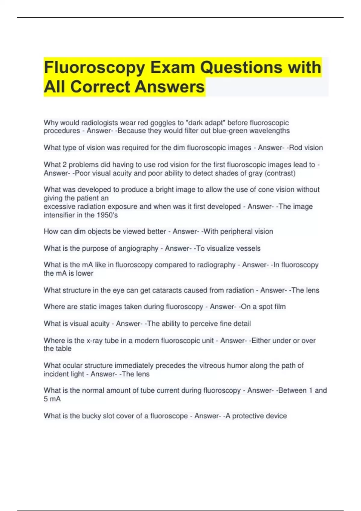 What type of vision was required for the dim fluoroscopic images - Answer- -Rod vision