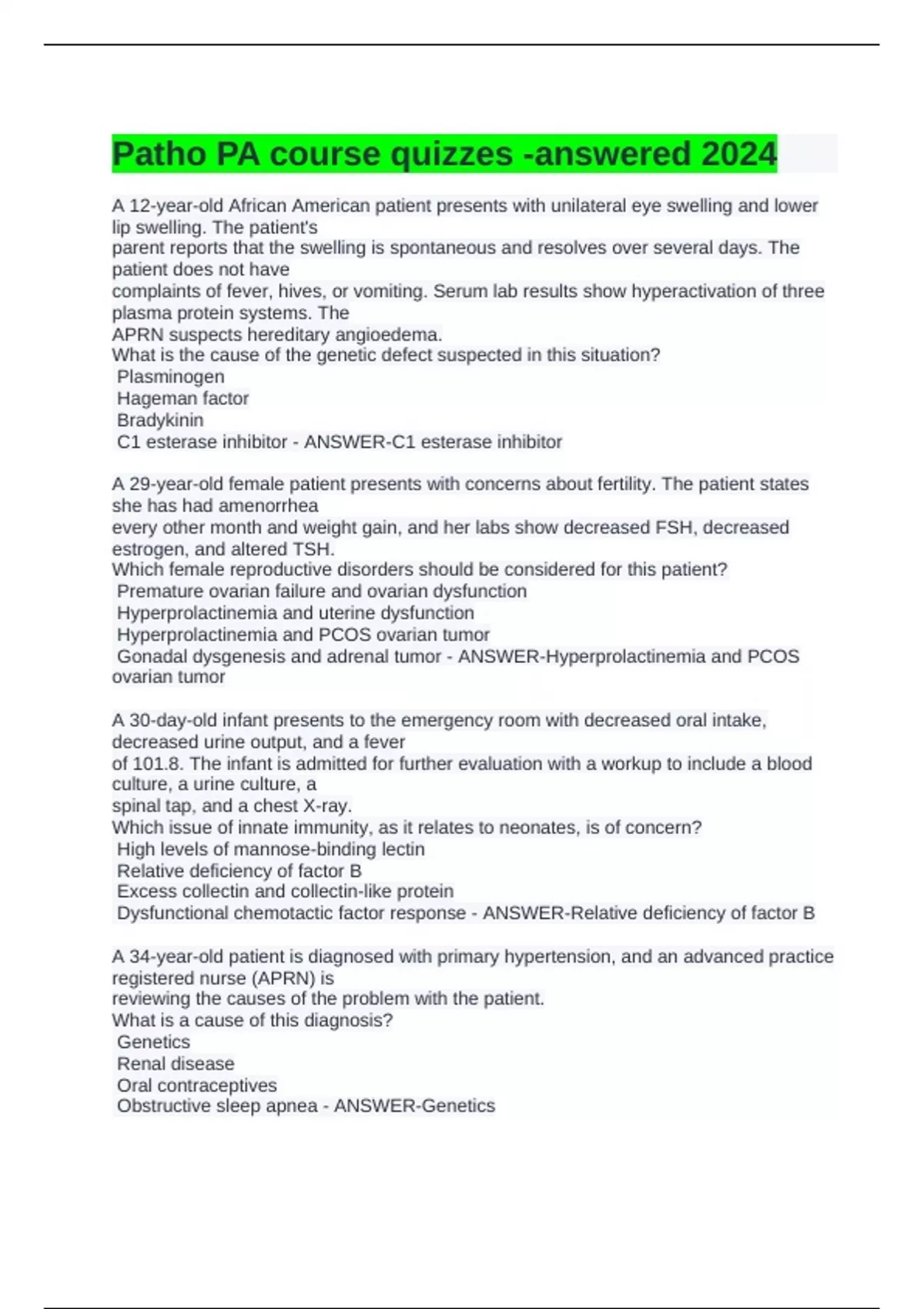 complaints of fever, hives, or vomiting. Serum lab results show hyperactivation of three