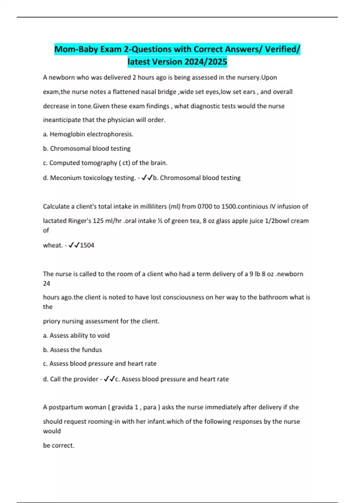 Mom-Baby Exam 2-Questions with Correct Answers/ Verified/ latest Version 2024/2025