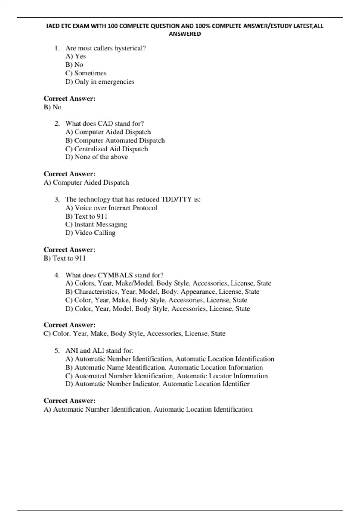 , IAED ETC EXAM WITH 100 COMPLETE QUESTION AND 100% COMPLETE ANSWER/ESTUDY LATEST,ALL