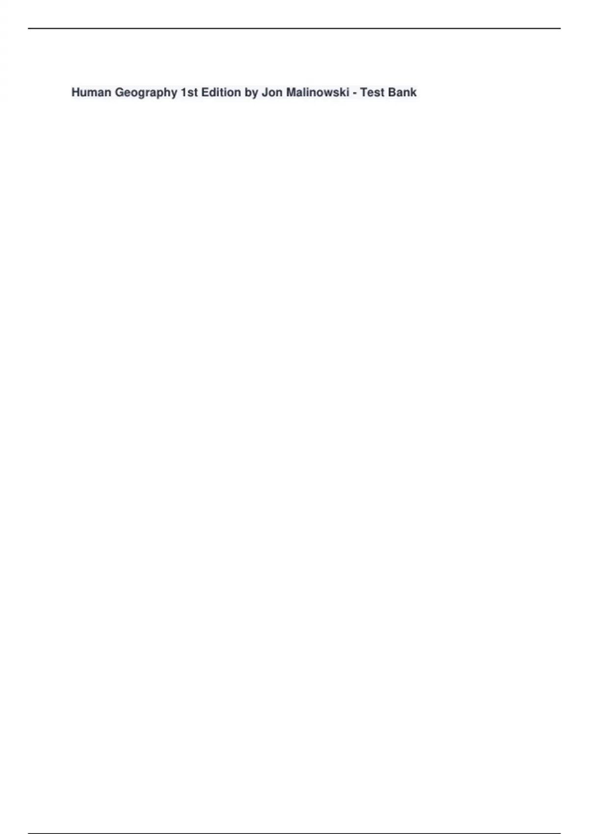 Human Geography 1st Edition by Jon Malinowski - Test Bank