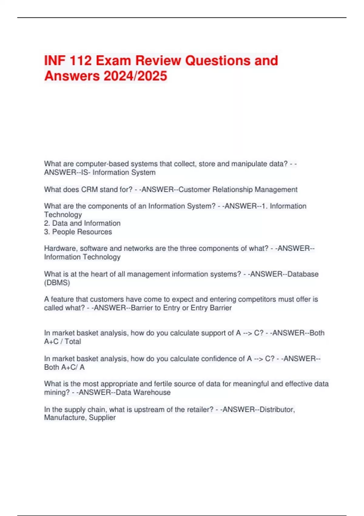 INF 112 Exam Review Questions and Answers 2024/2025