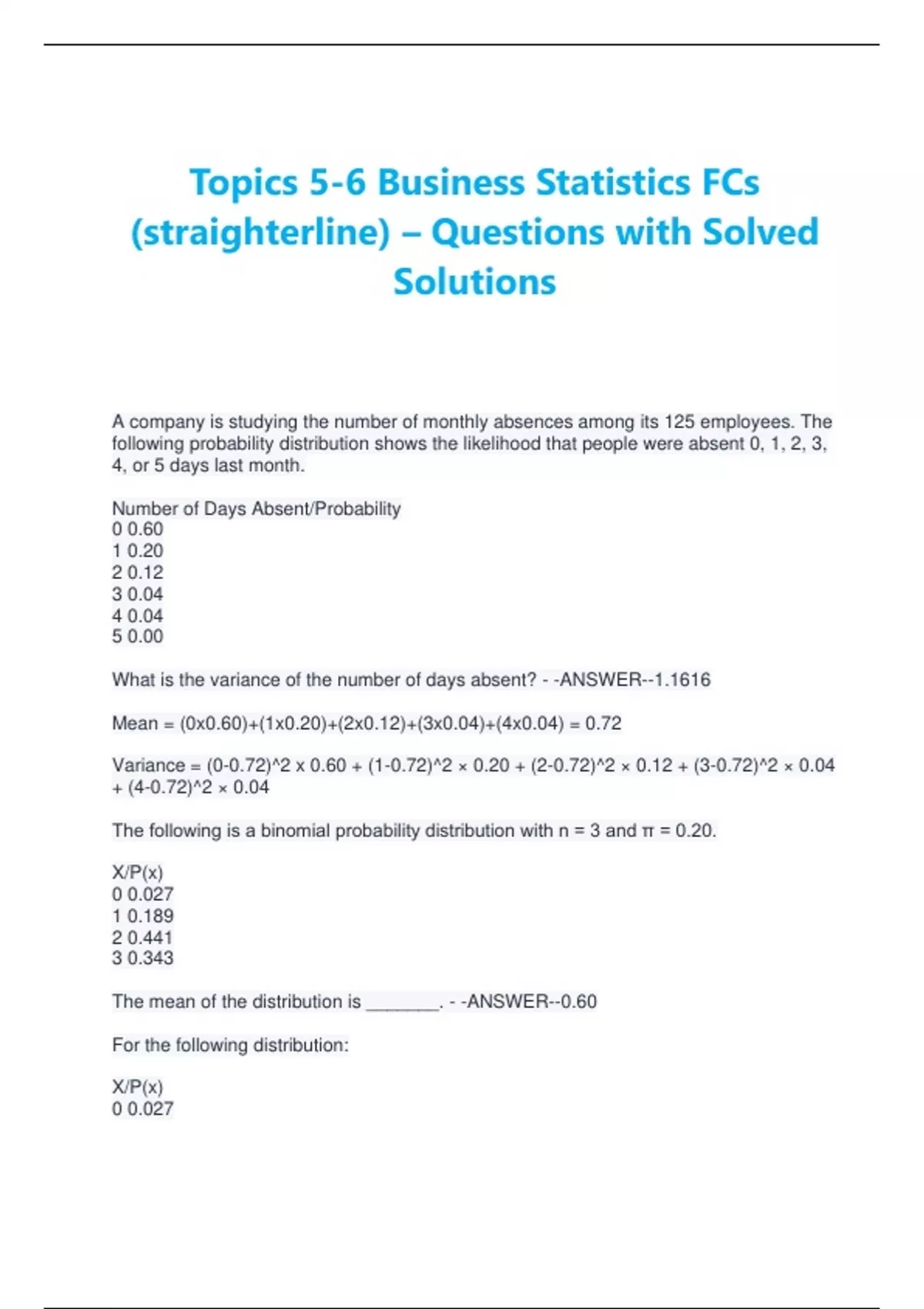 Topics 5-6 Business Statistics FCs (straighterline) – Questions with Solved Solutions